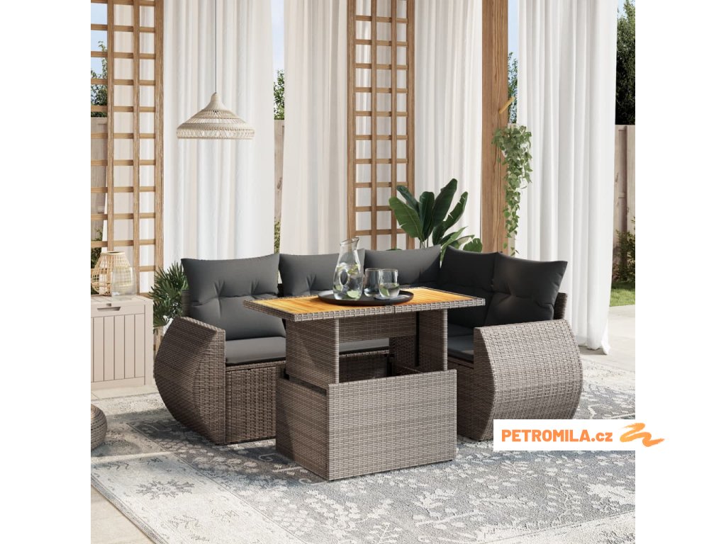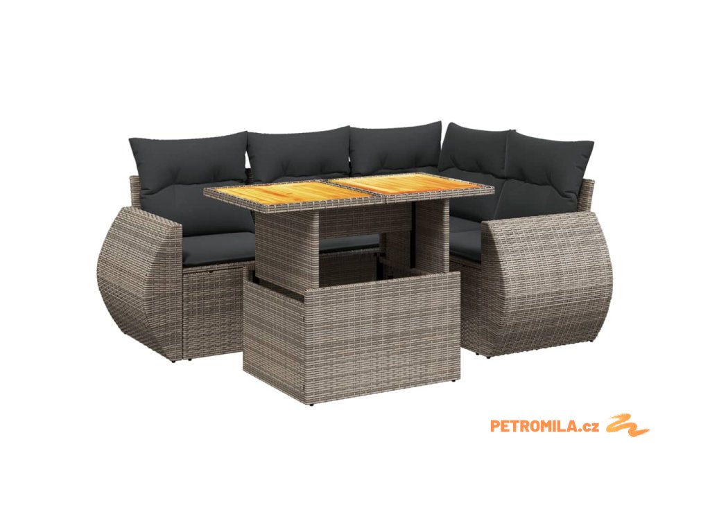 5dílná zahradní sedací souprava s poduškami šedá polyratan