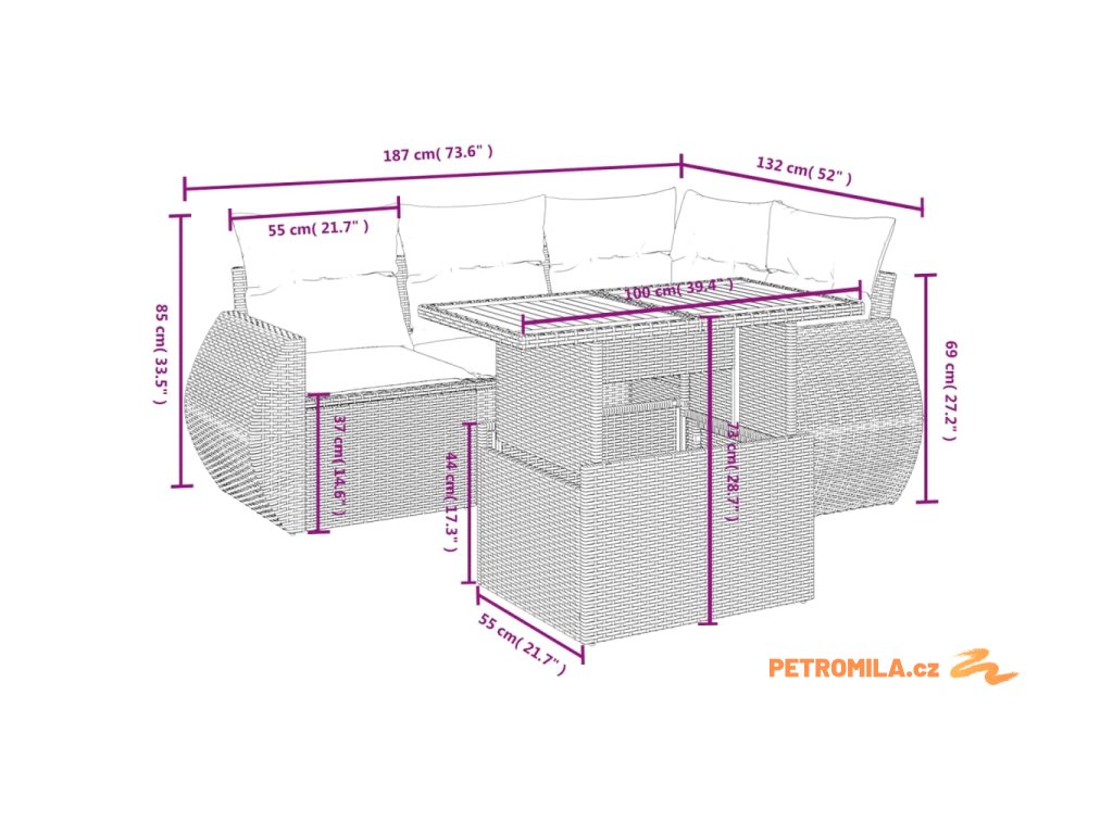 Tato zahradní sedací souprava je dokonalým doplňkem vaší zahrady, terasy nebo dvorku a poskytne vám pohodlné a příjemné místo, kde si můžete povídat s rodinou a přáteli nebo jen tak odpočívat a užívat si pobyt venku.