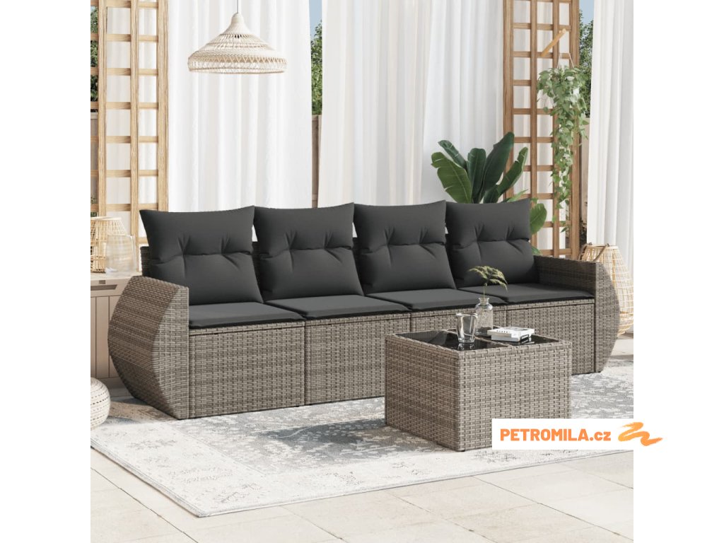 5dílná zahradní sedací souprava s poduškami šedá polyratan