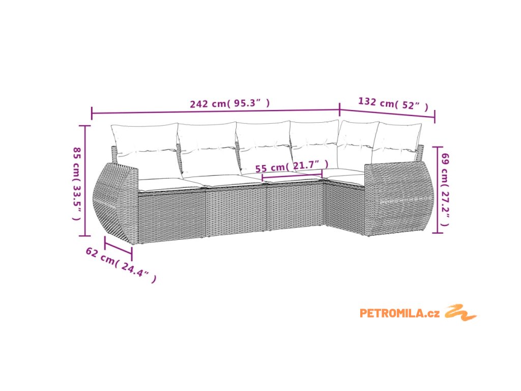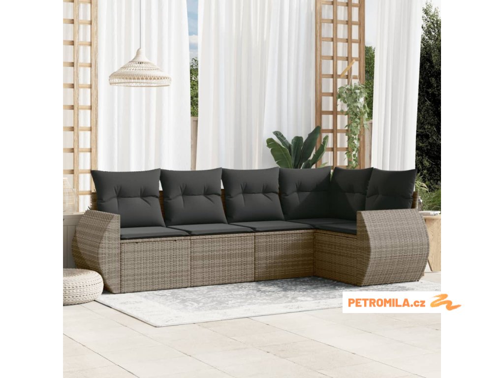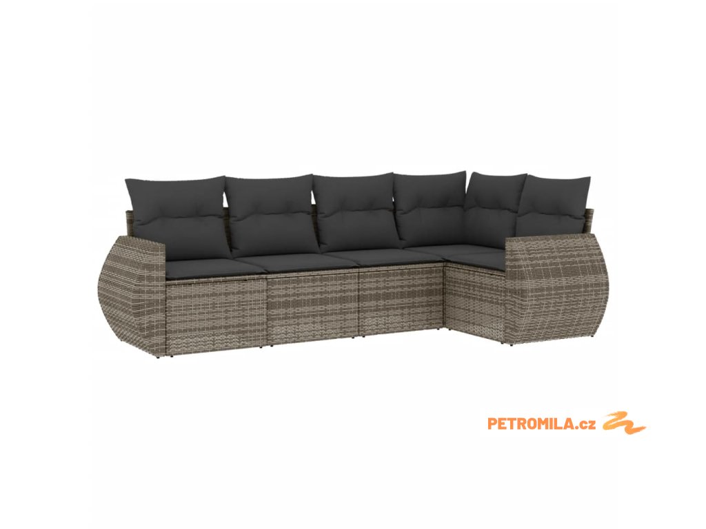 5dílná zahradní sedací souprava s poduškami šedá polyratan
