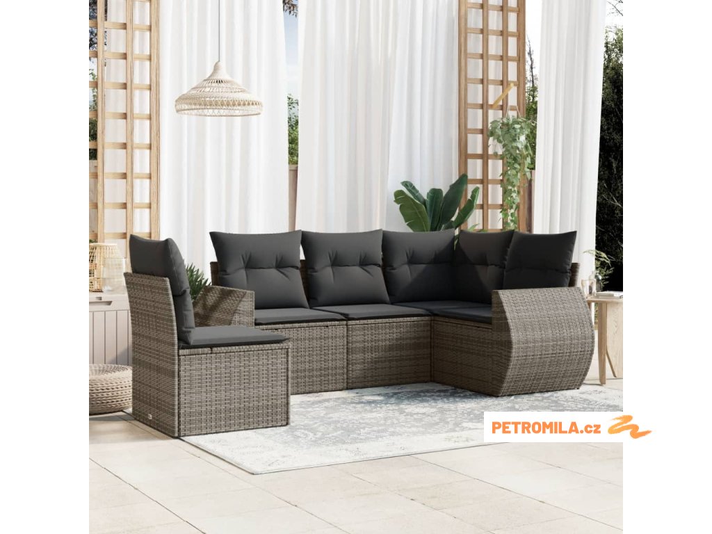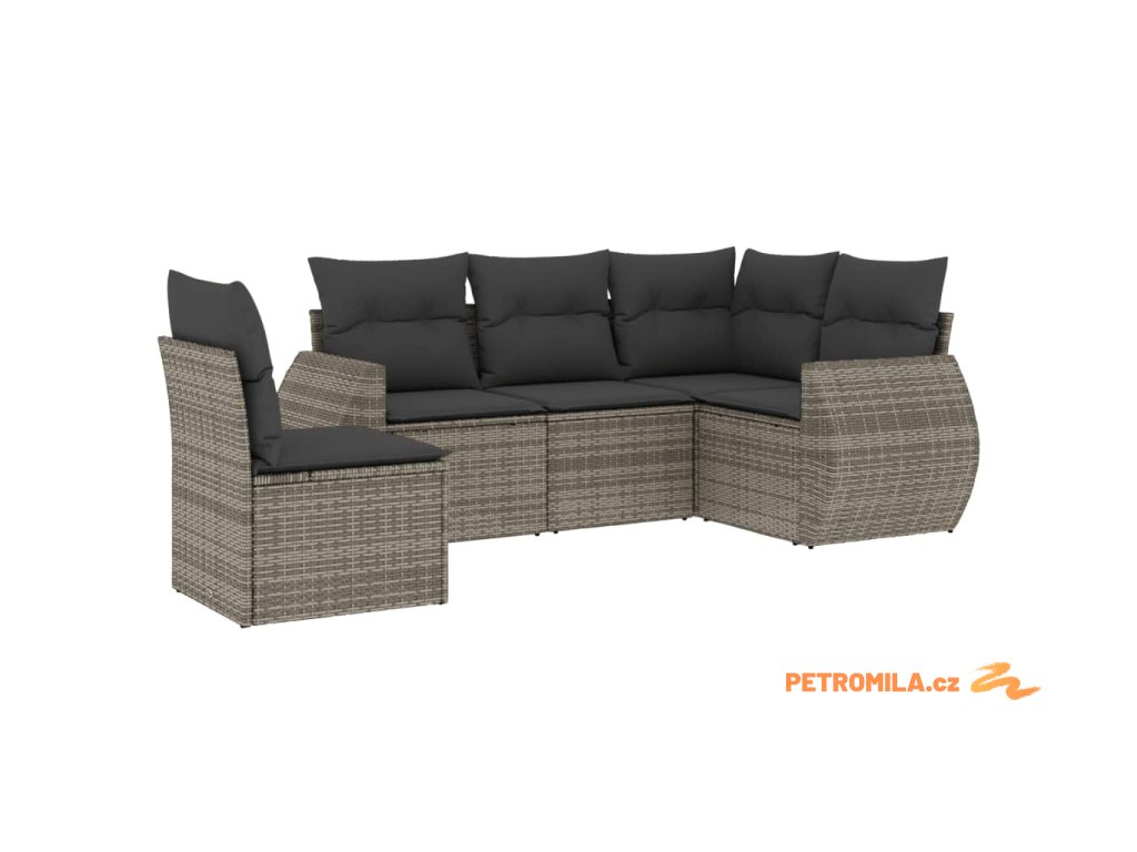 5dílná zahradní sedací souprava s poduškami šedá polyratan