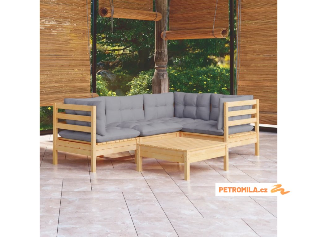 5dílná zahradní sedací souprava s šedými poduškami borovice