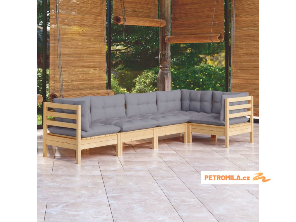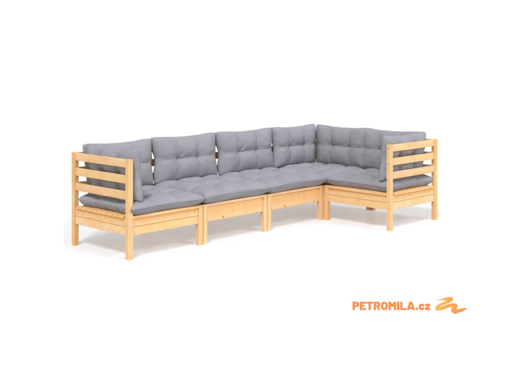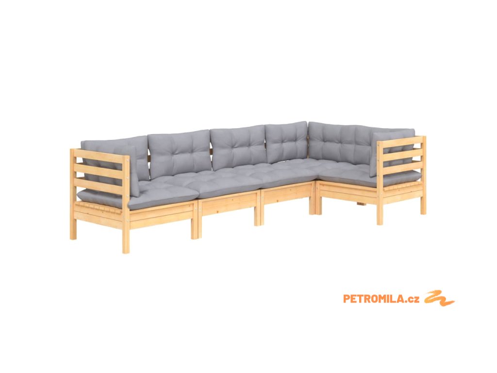 5dílná zahradní sedací souprava s šedými poduškami borovice