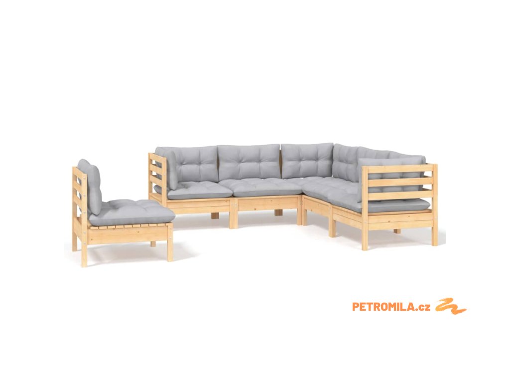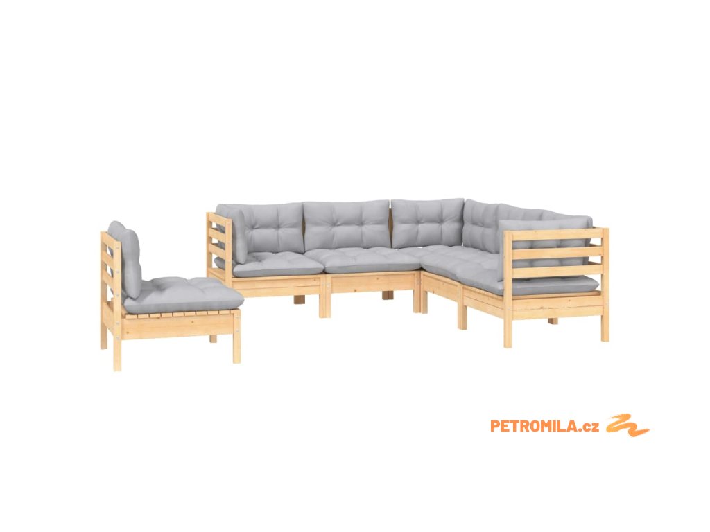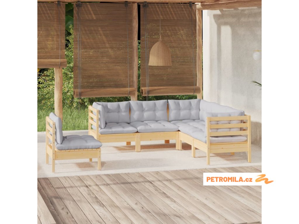 5dílná zahradní sedací souprava s šedými poduškami borovice