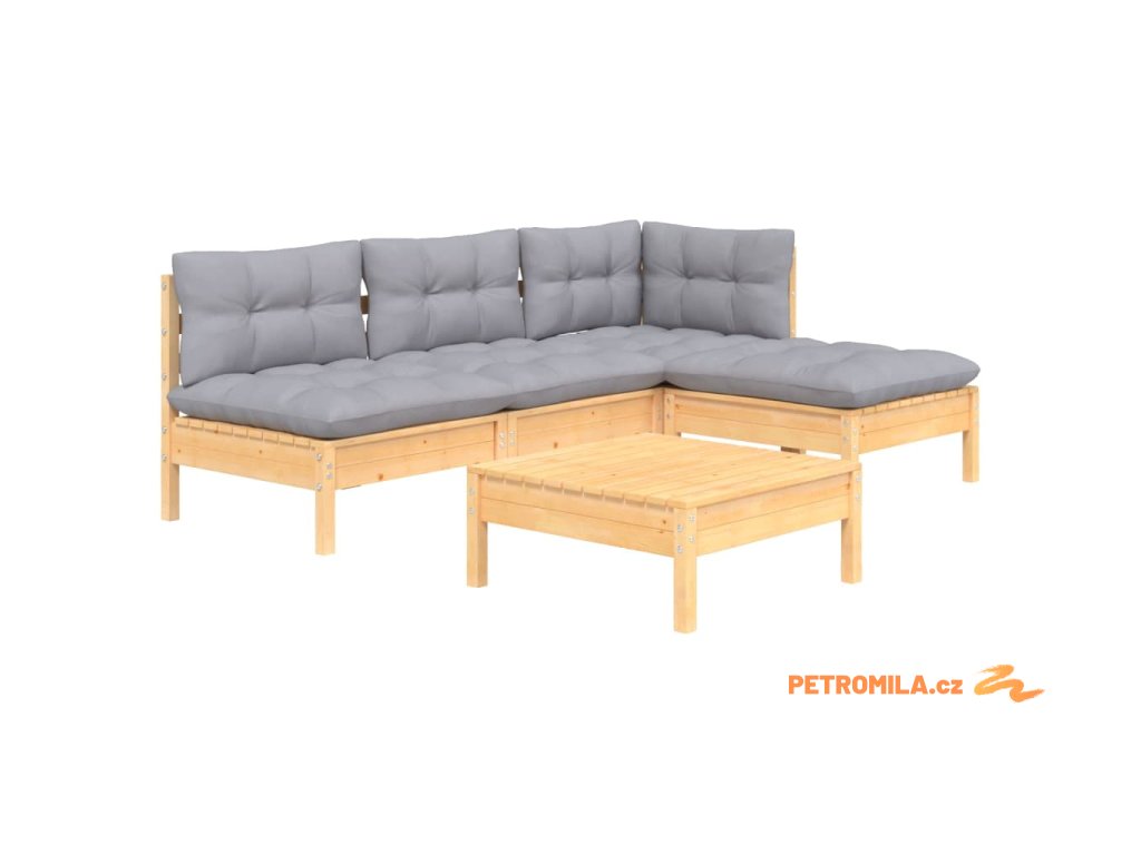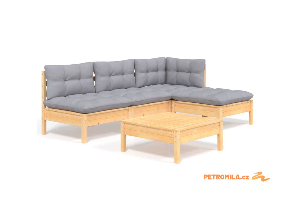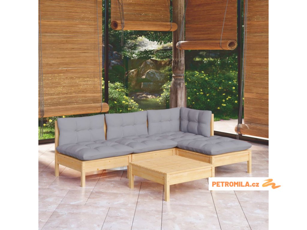5dílná zahradní sedací souprava s šedými poduškami borovice