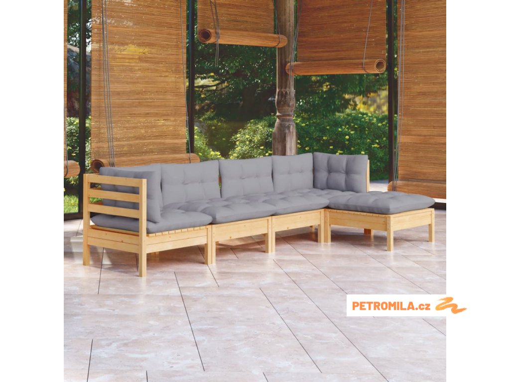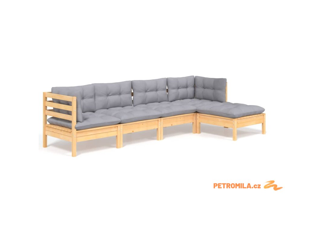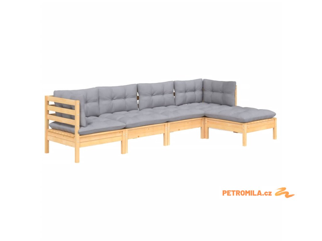5dílná zahradní sedací souprava s šedými poduškami borovice