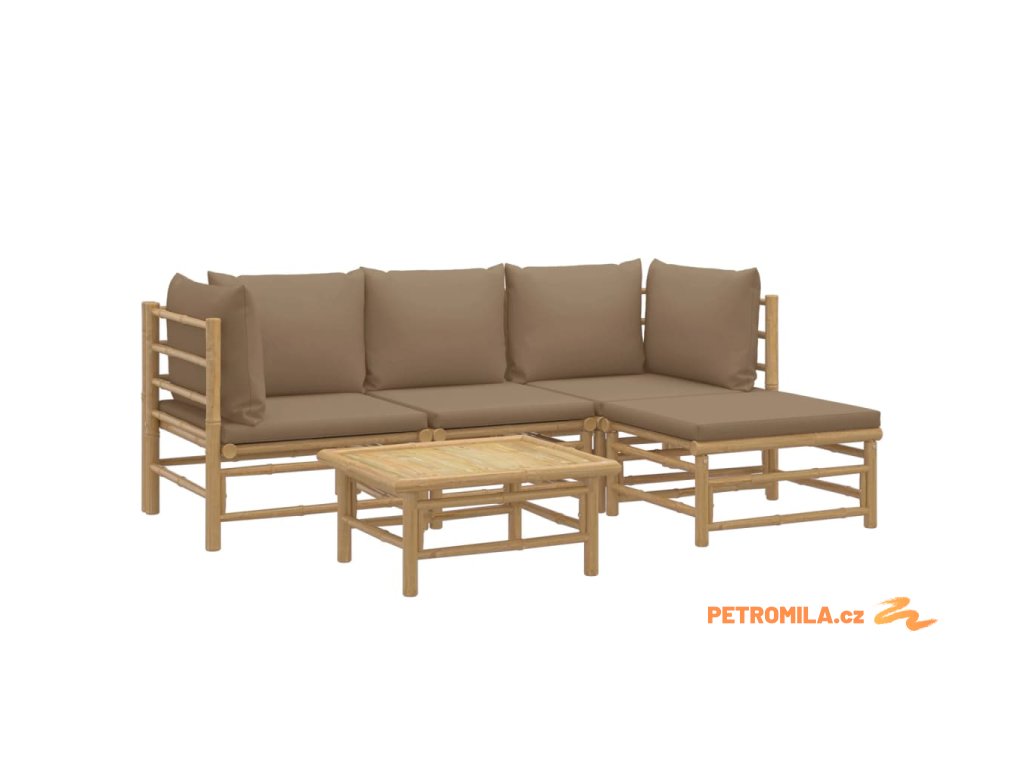 5dílná zahradní sedací souprava s taupe poduškami bambus