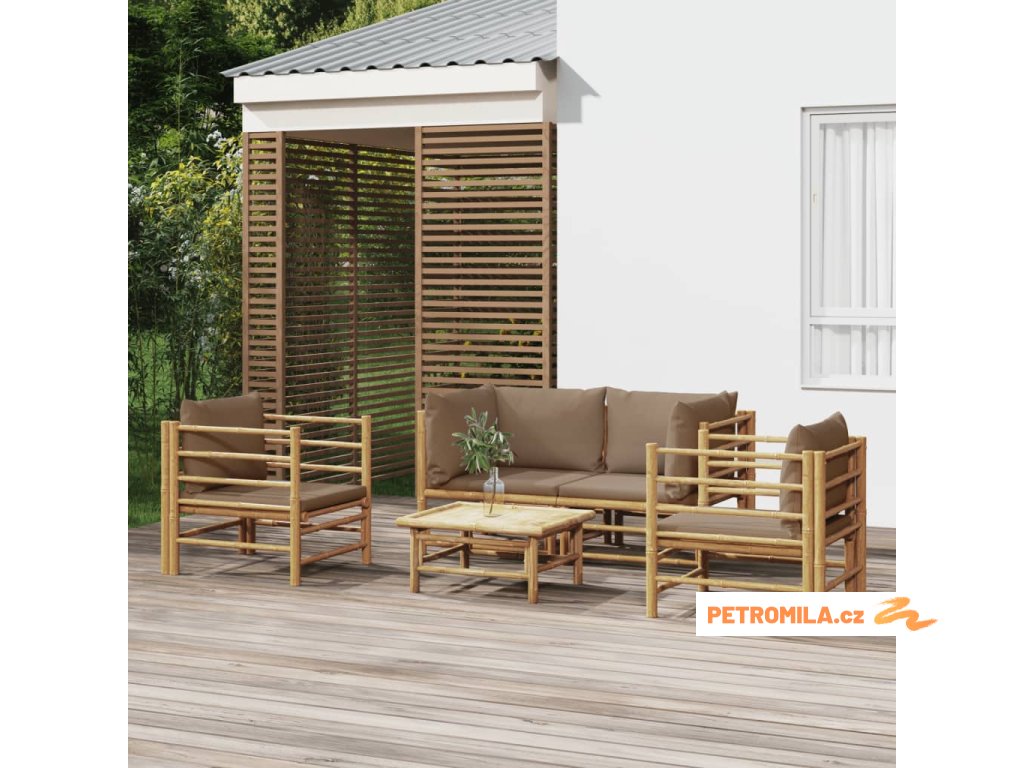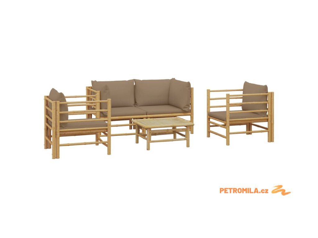5dílná zahradní sedací souprava s taupe poduškami bambus
