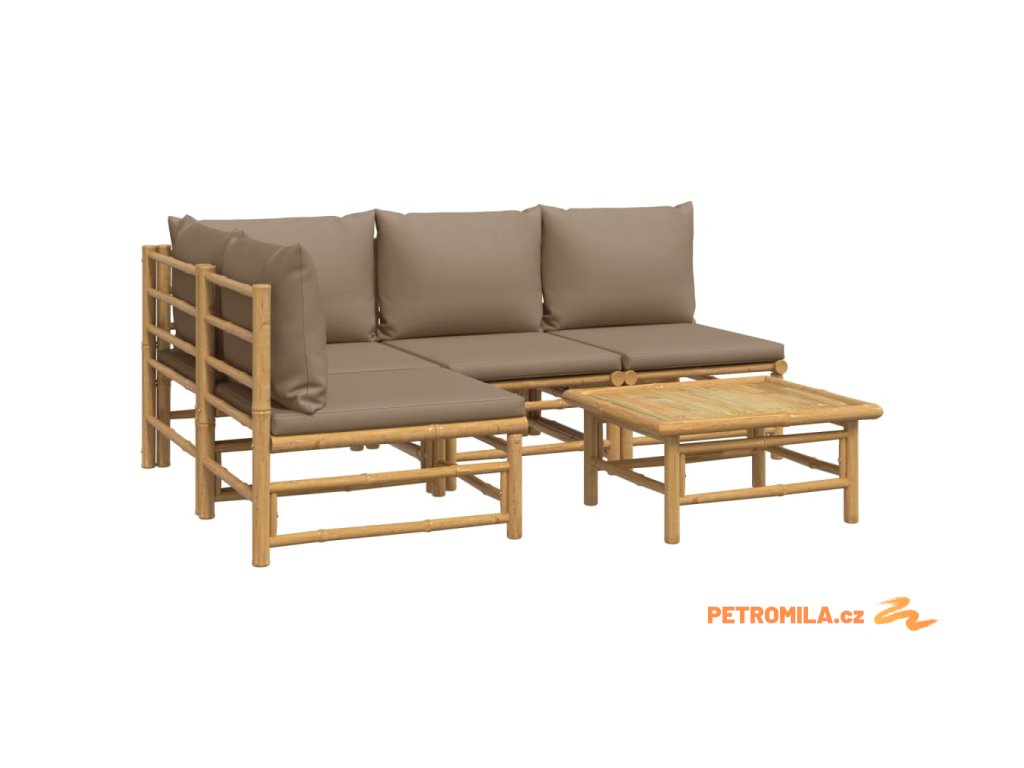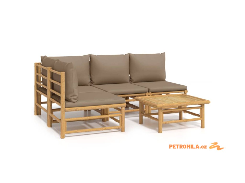 5dílná zahradní sedací souprava s taupe poduškami bambus