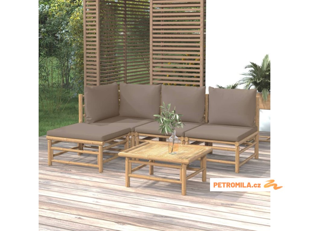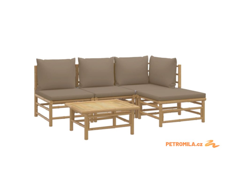 5dílná zahradní sedací souprava s taupe poduškami bambus