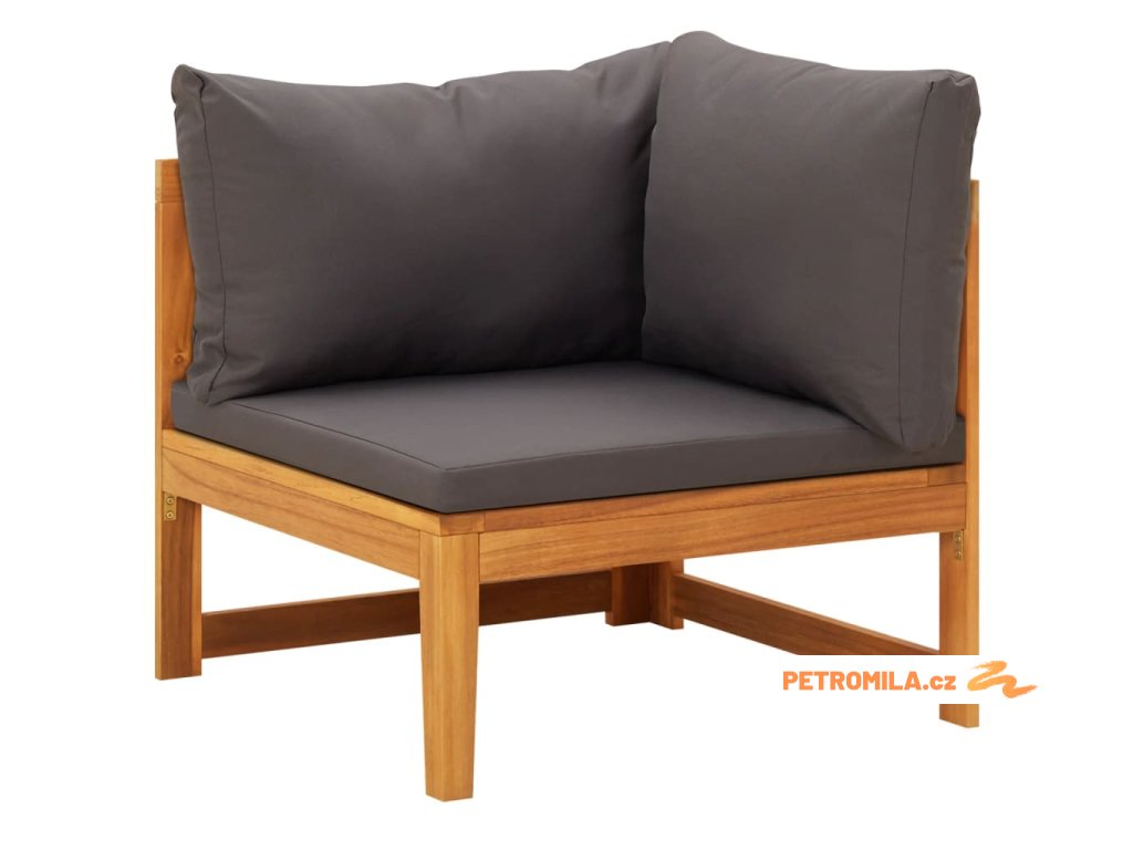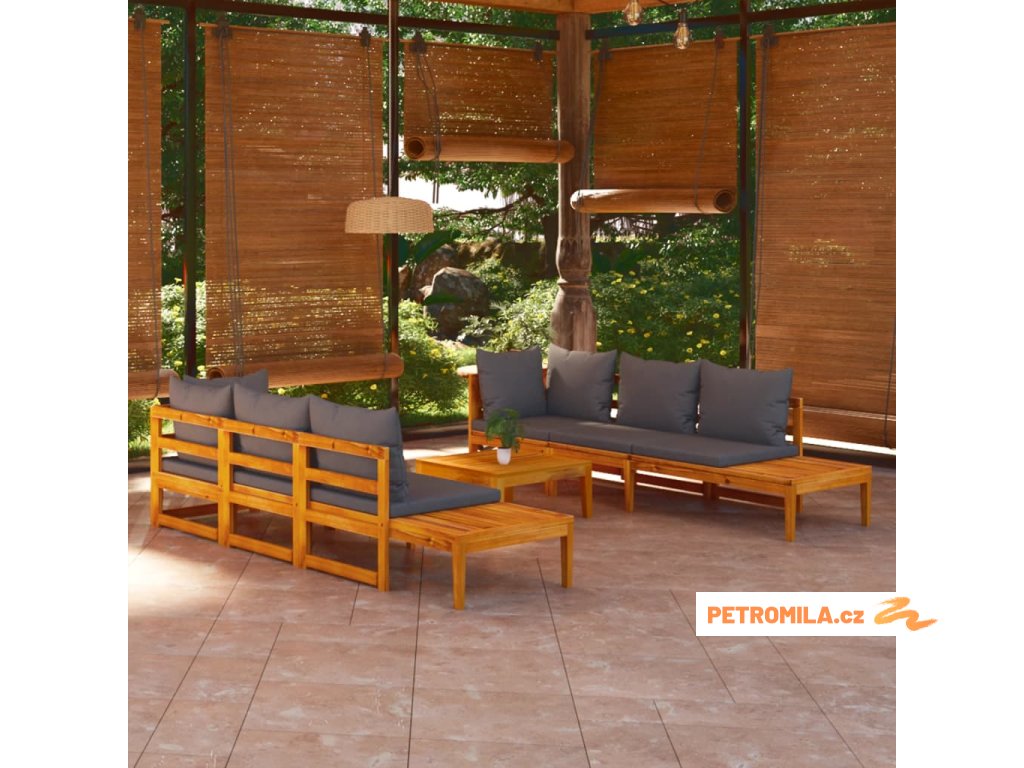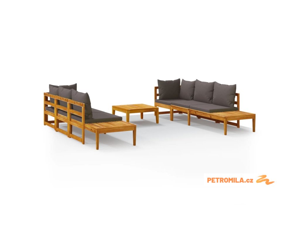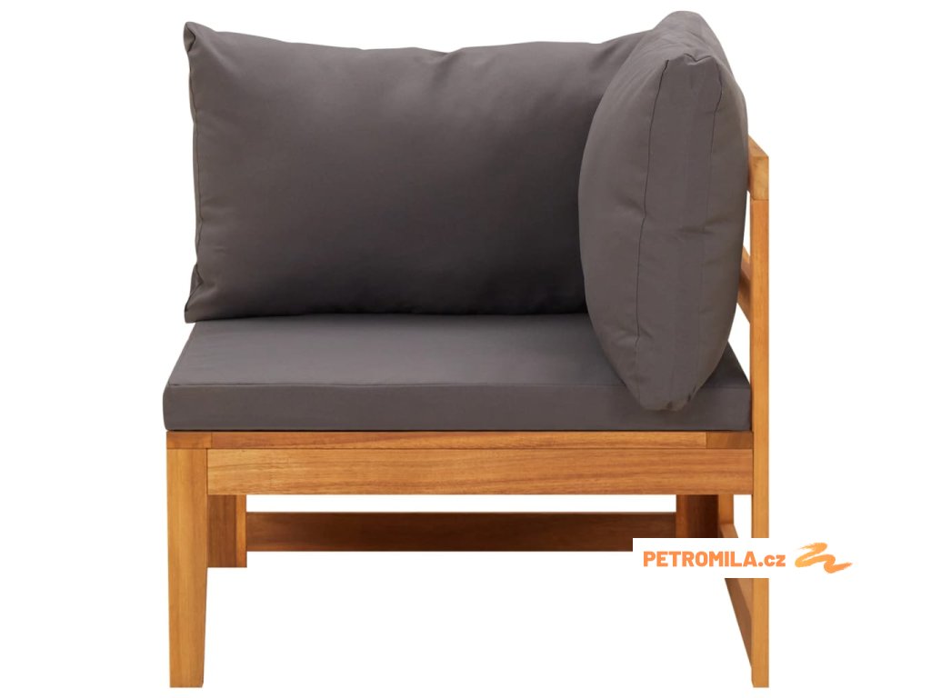 5dílná zahradní sedací souprava s tmavě šedými poduškami akácie