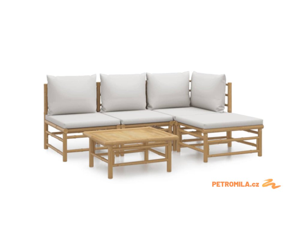 5dílná zahradní sedací souprava světle šedé podušky bambus