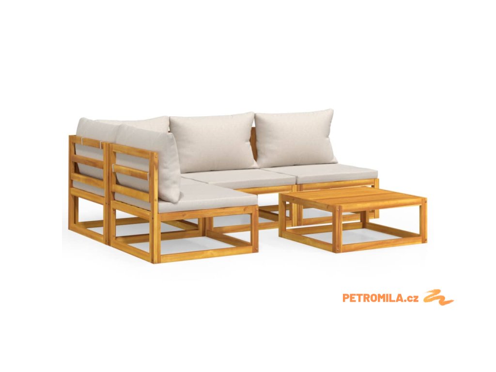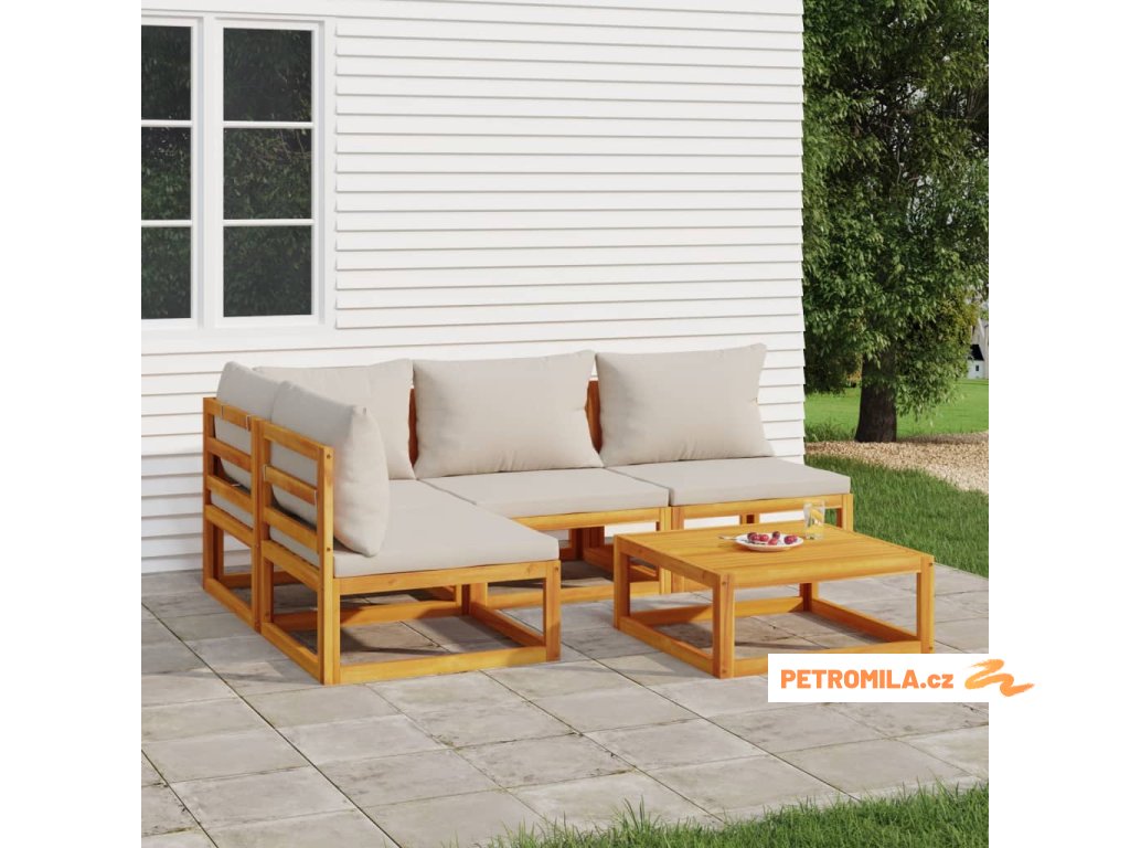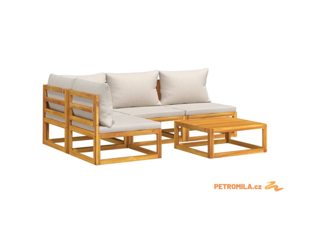 5dílná zahradní sedací souprava světle šedé podušky masiv