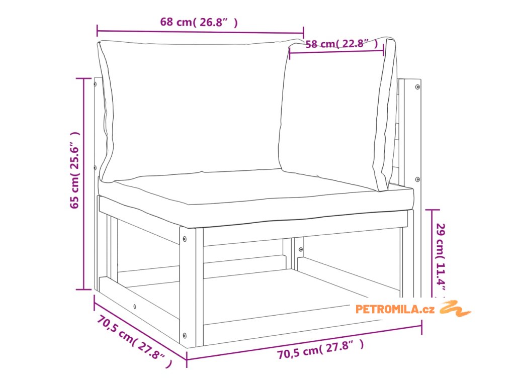 - Rozměry: 68 x 68 x 29 cm (Š x H x V)