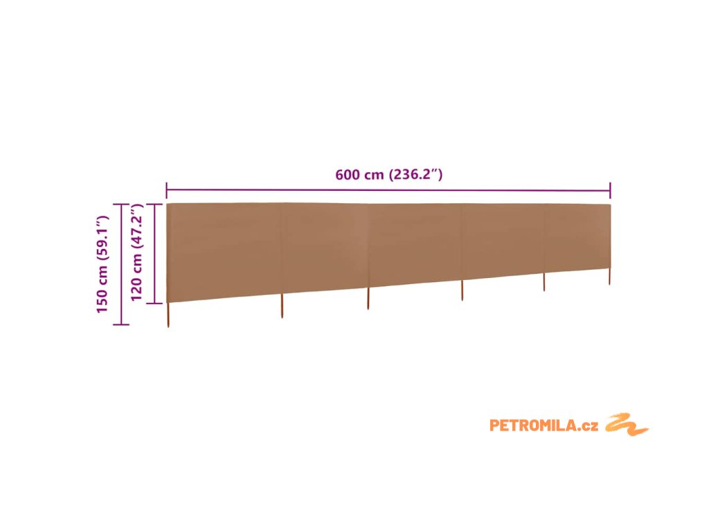 5dílná zástěna proti větru textil 600 x 120 cm taupe