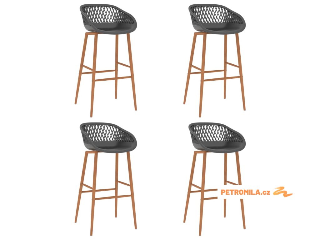 Náš vysoký stůl má horní desku z odolné MDF a silné kovové nohy, které svým vzhledem připomínají dřevo. Barové stoličky mají ergonomicky tvarované sedáky s integrovaným nízkým opěradlem v síťovaném provedení. Jelikož jsou vyrobené z robustního PP a podepírají je pevné kovové nohy s termotransferovým potiskem v imitaci dřeva, jsou mimořádně bytelné a dlouho vám vydrží.