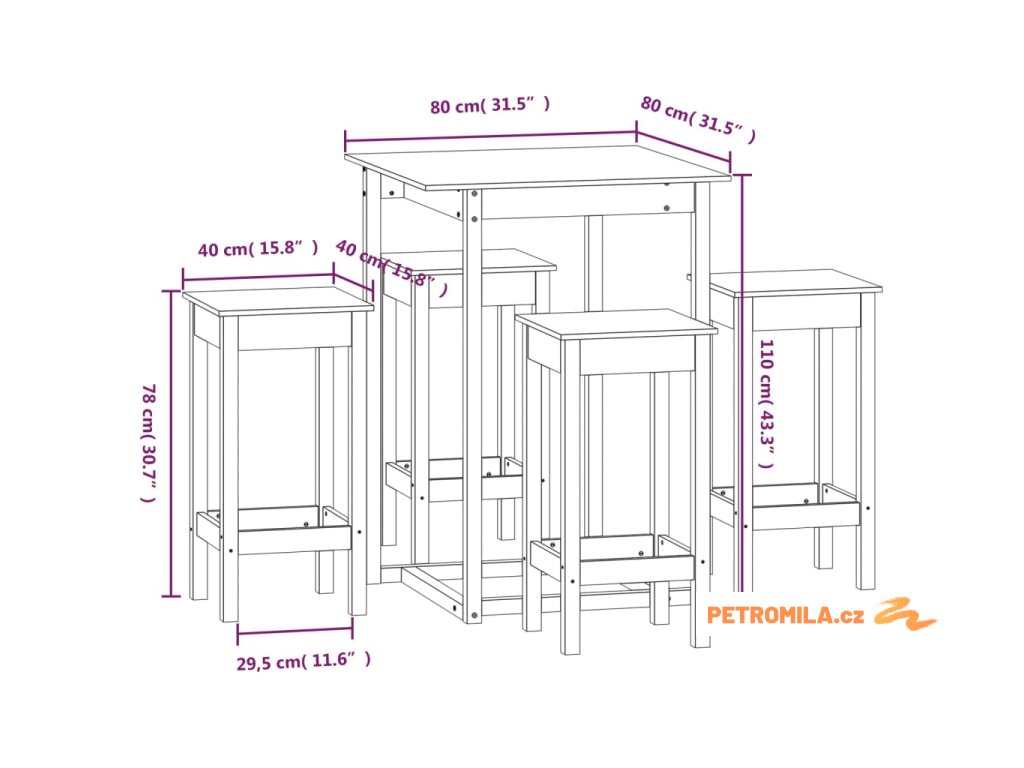 - Rozměry barového stolu: 80 x 80 x 110 cm (Š x H x V)