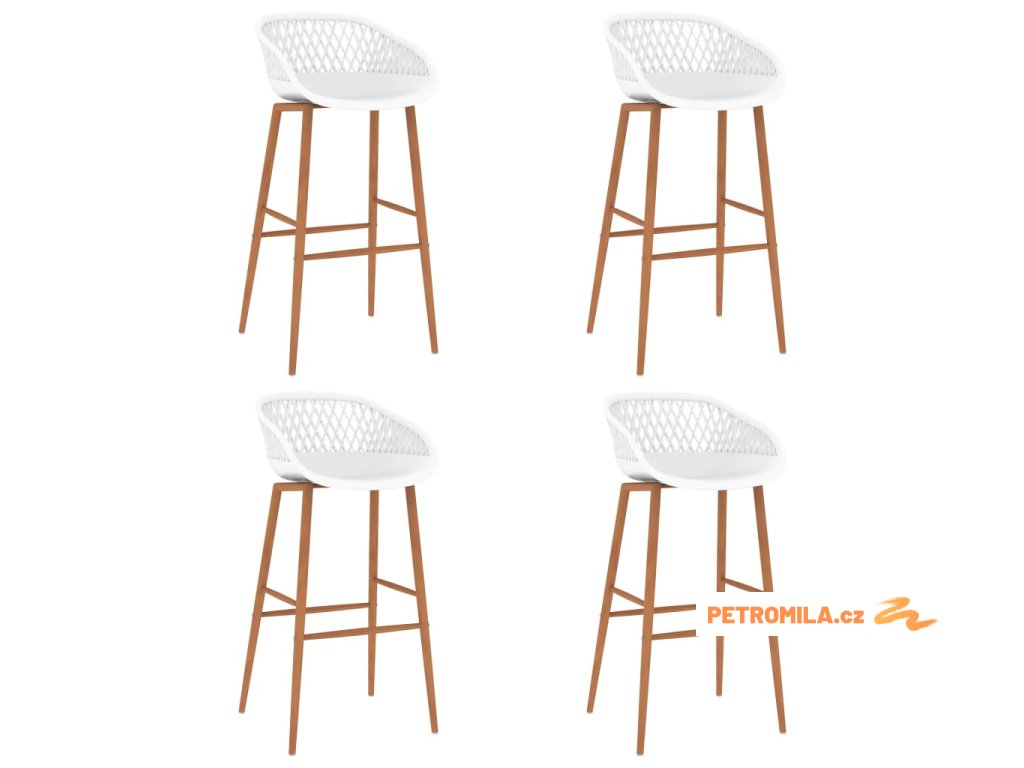 Náš vysoký stůl má horní desku z odolné MDF a silné kovové nohy, které svým vzhledem připomínají dřevo. Barové stoličky mají ergonomicky tvarované sedáky s integrovaným nízkým opěradlem v síťovaném provedení. Jelikož jsou vyrobené z robustního PP a podepírají je pevné kovové nohy s termotransferovým potiskem v imitaci dřeva, jsou mimořádně bytelné a dlouho vám vydrží.