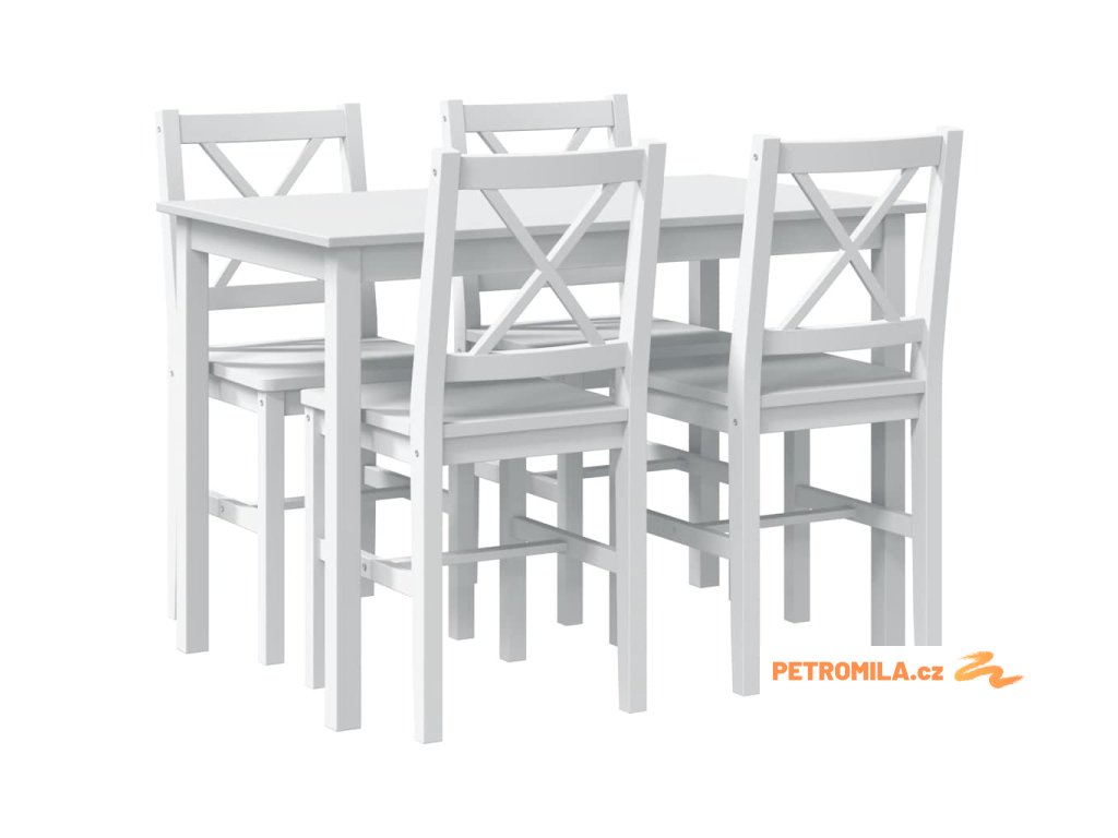 Tento jídelní set je zhotovený z masivního dřeva s atraktivní a elegantní povrchovou úpravou. Kvalita dřeva vám zaručuje roky spokojeného používání. Dodání obsahuje čtyři židle a stůl.