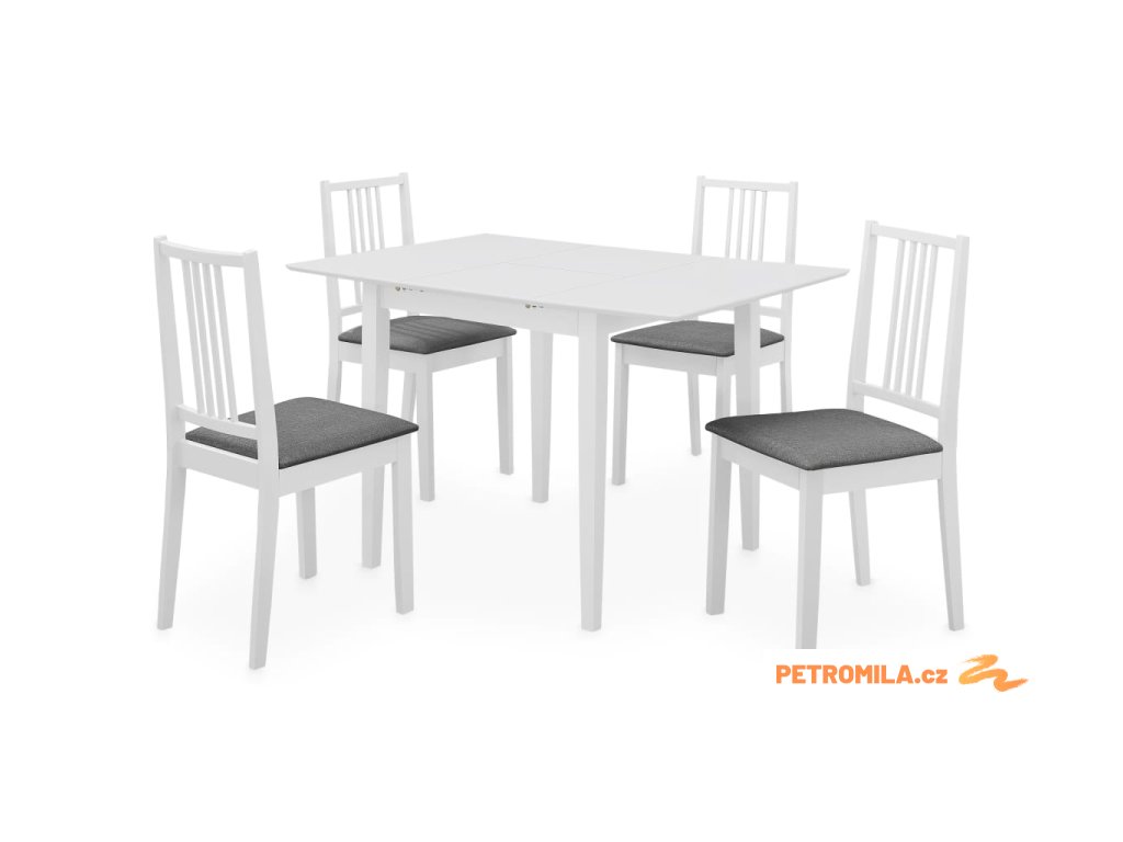 Sestavení jídelního setu je jednoduché. Balení obsahuje 1 rozkládací stůl a 4 židle.
