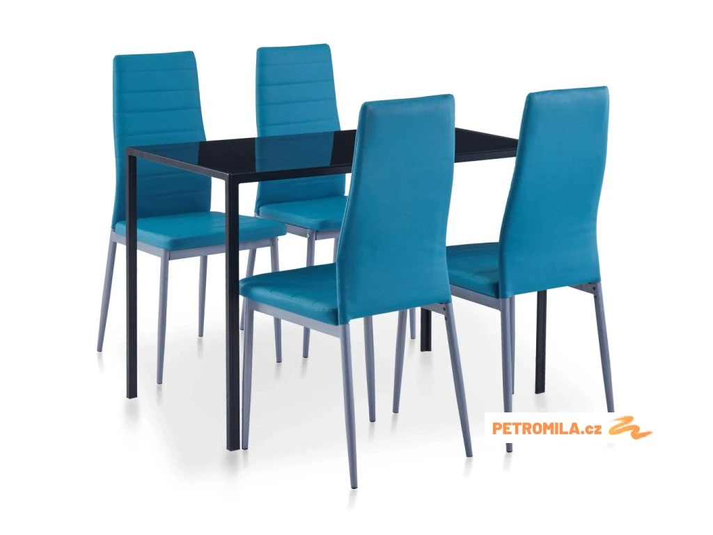 Stolní deska je vyrobena z velmi pevného tvrzeného skla, které se snadno čistí. Každá židle je čalouněná kvalitní umělou kůží. Pružné polstrované sedáky jsou velmi pohodlné.