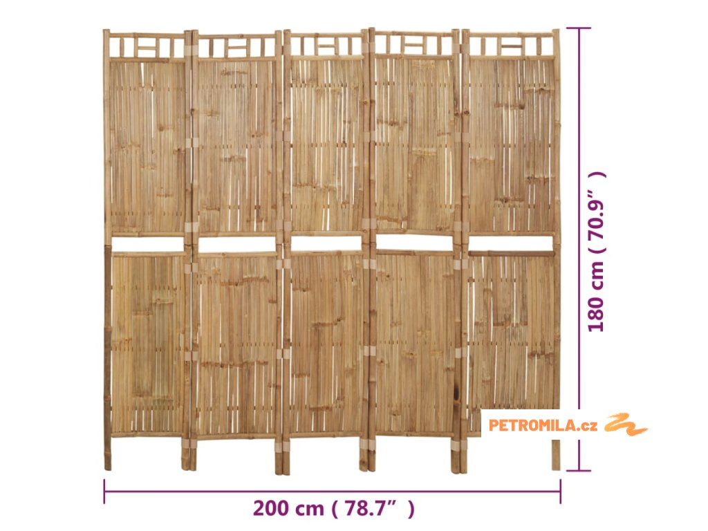 Tento 5panelový bambusový paraván, který je stylový a praktický, lze použít k dekoraci nebo jako přepážku.