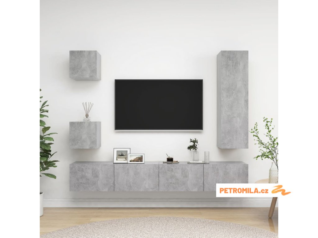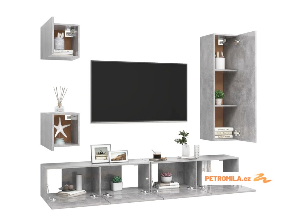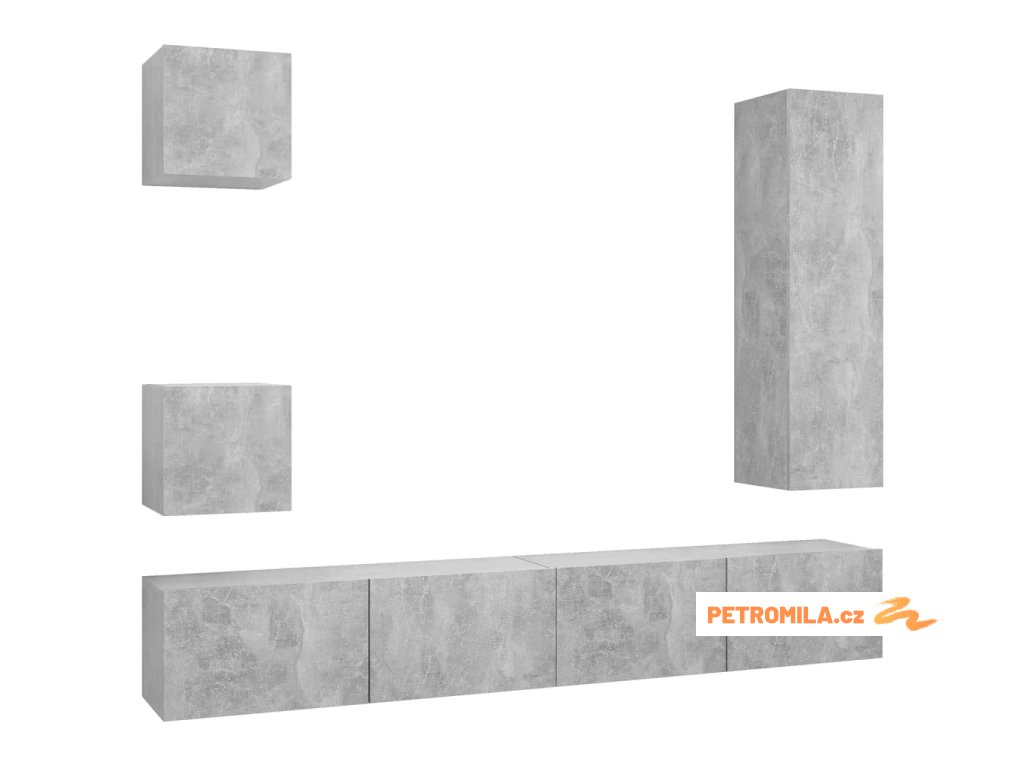 5dílný set TV skříněk betonově šedý kompozitní dřevo