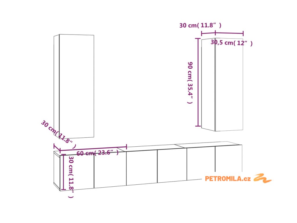 - 3x TV skříňka: 60 x 30 x 30 cm (Š x H x V)