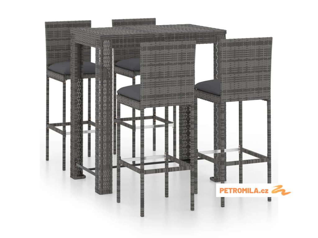 Barový stůl je zpevněný ocelovým rámem s práškovým nástřikem, takže je stabilní a bytelný. Čtvercová deska stolu je ideální pro servírování nápojů, jídla nebo k vystavování dekorativních předmětů. Stoličky mají robustní rám z oceli a jsou vyrobené z klimaticky odolného PE ratanu, který je zárukou stability a umožňuje snadné přenášení. Poduška a opěrka na nohy přispívají k většímu pohodlí při sezení na stoličce. Polyesterový potah na podušky se skrytým zipem usnadňuje čištění.