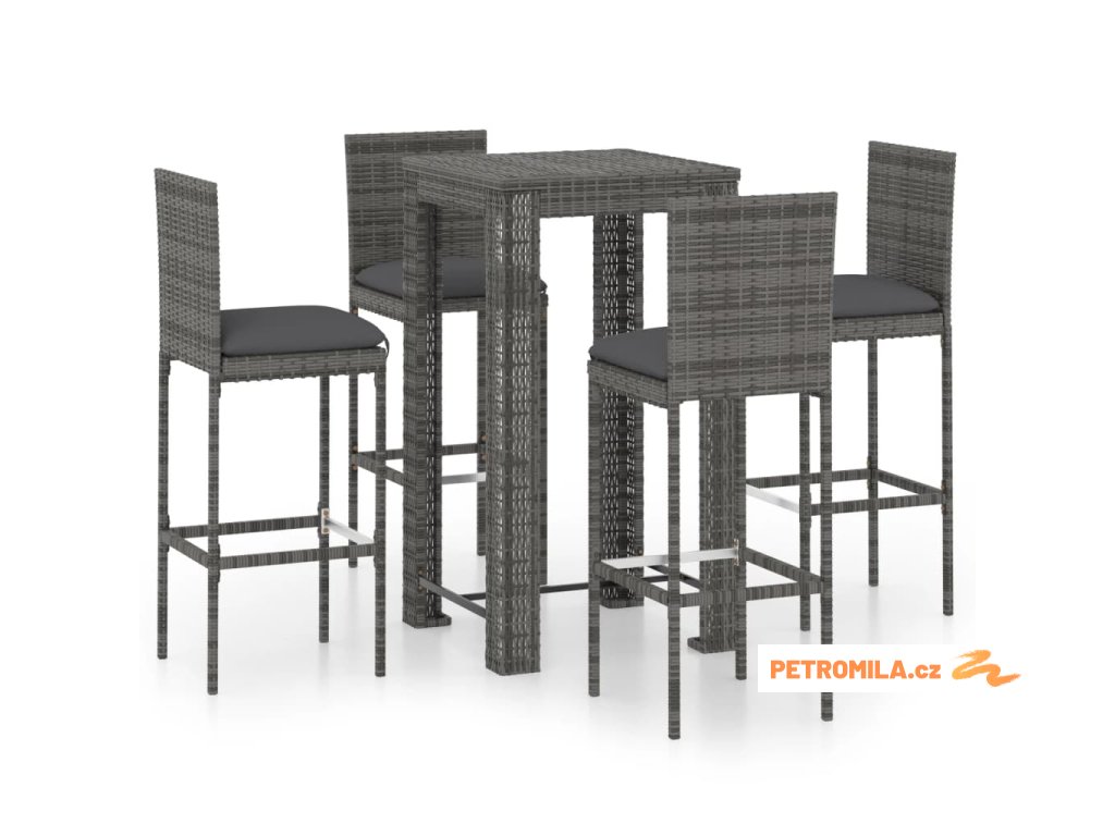 Barový stůl je zpevněný ocelovým rámem s práškovým nástřikem, takže je stabilní a bytelný. Čtvercová deska stolu je ideální pro servírování nápojů, jídla nebo k vystavování dekorativních předmětů. Stoličky mají robustní rám z oceli a jsou vyrobené z klimaticky odolného PE ratanu, který je zárukou stability a umožňuje snadné přenášení. Poduška a opěrka na nohy přispívají k většímu pohodlí při sezení na stoličce. Polyesterový potah na podušky se skrytým zipem usnadňuje čištění.