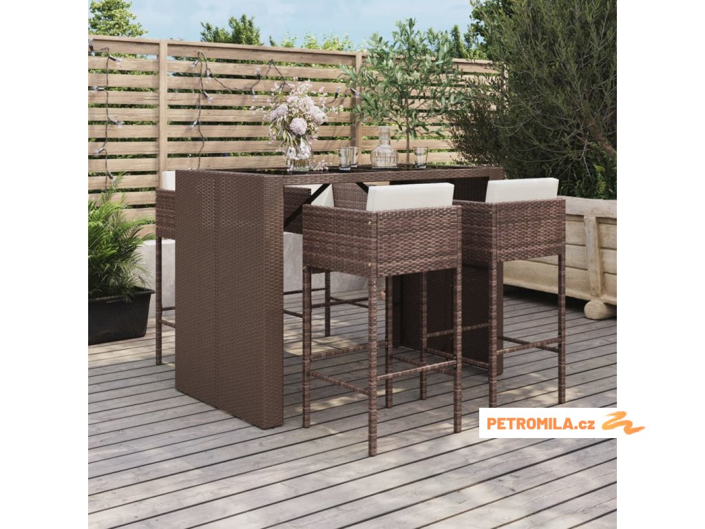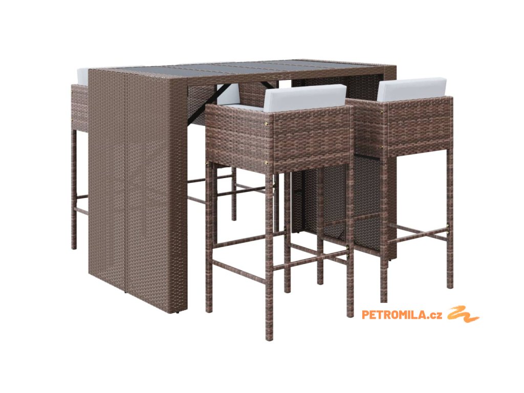 5dílný zahradní barový set s poduškami hnědý polyratan