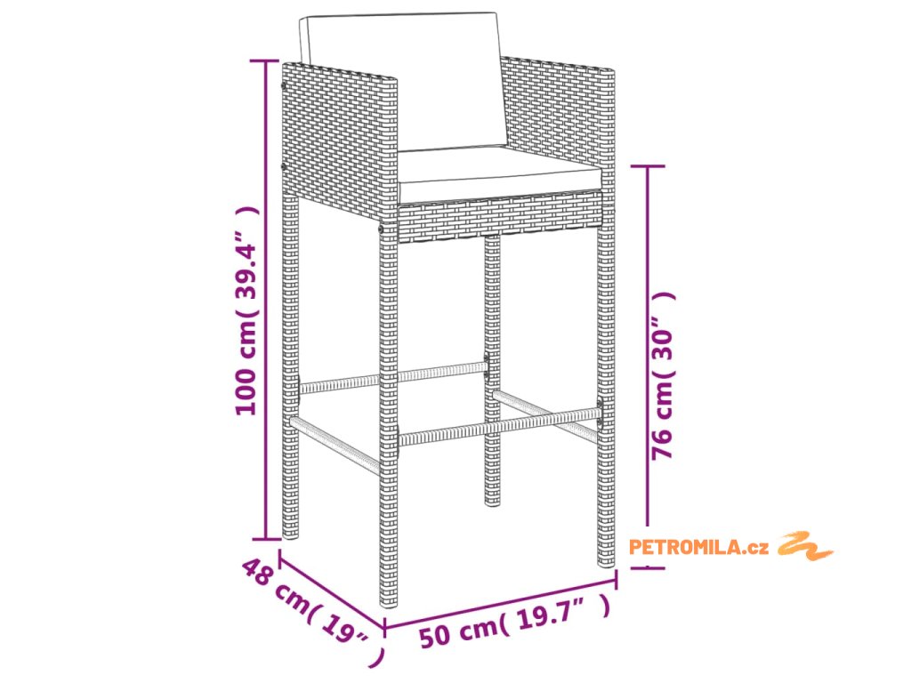 - Pohodlné sezení: Barová stolička je navržena s opěrkou nohou, opěradlem a područkami, což vám zajistí pohodlné sezení. Pohodlí vám také poskytnou měkké podušky na sedáku a opěradle.