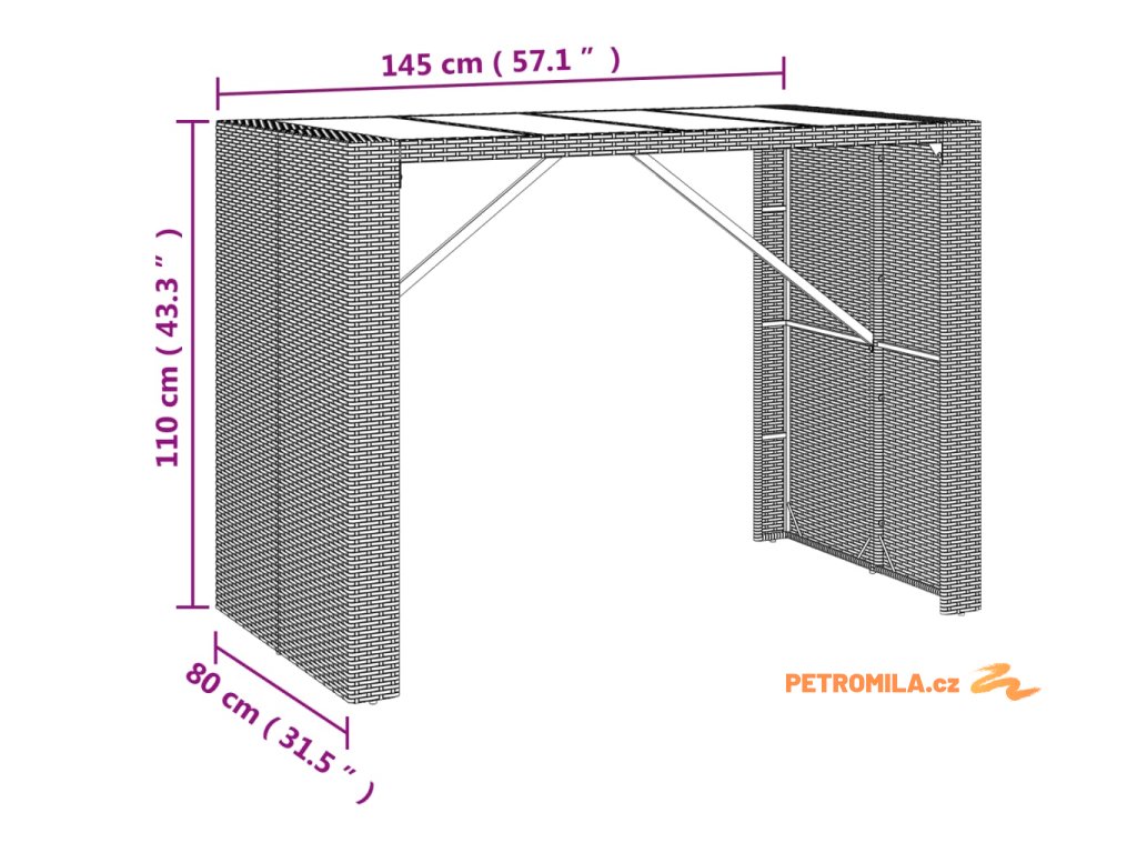 - Rozměry: 145 x 80 x 110 cm (D x Š x V)