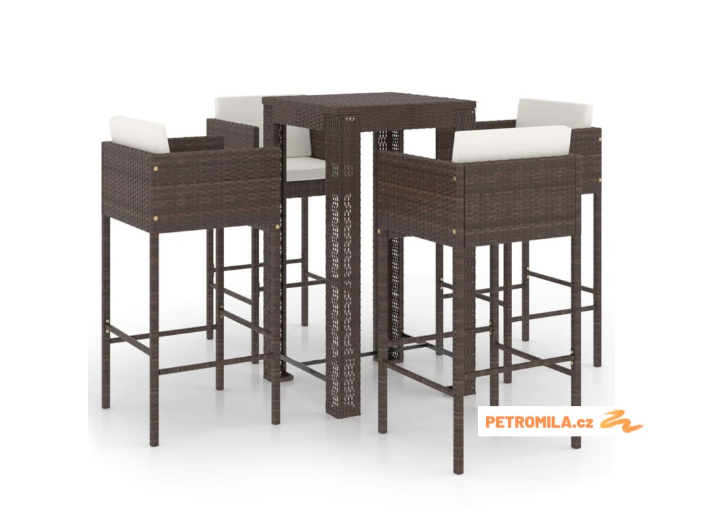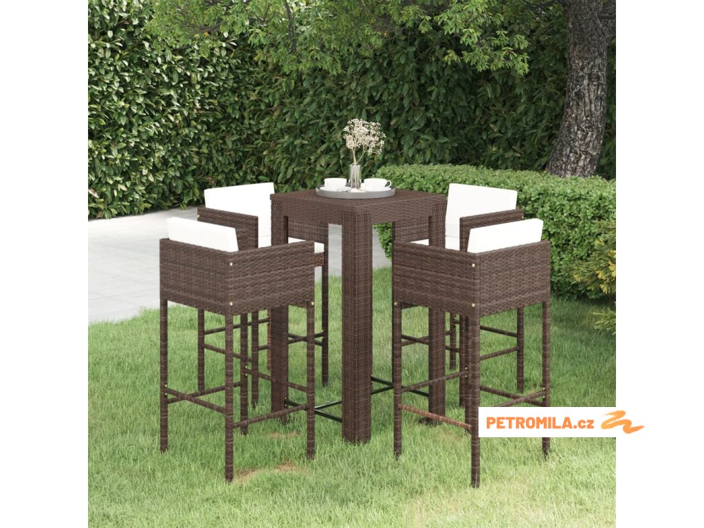 5dílný zahradní barový set s poduškami polyratan hnědý