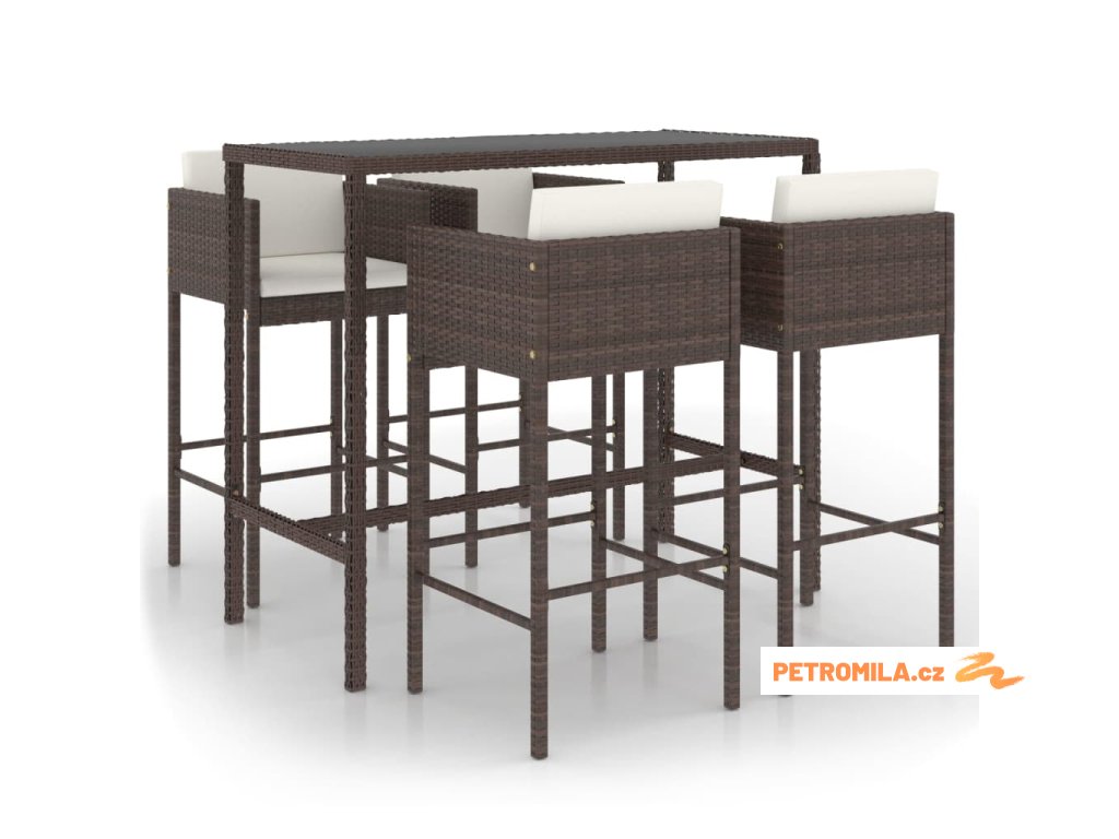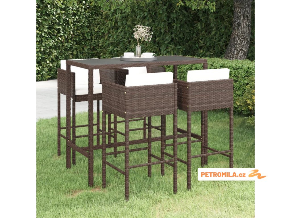 5dílný zahradní barový set s poduškami polyratan hnědý