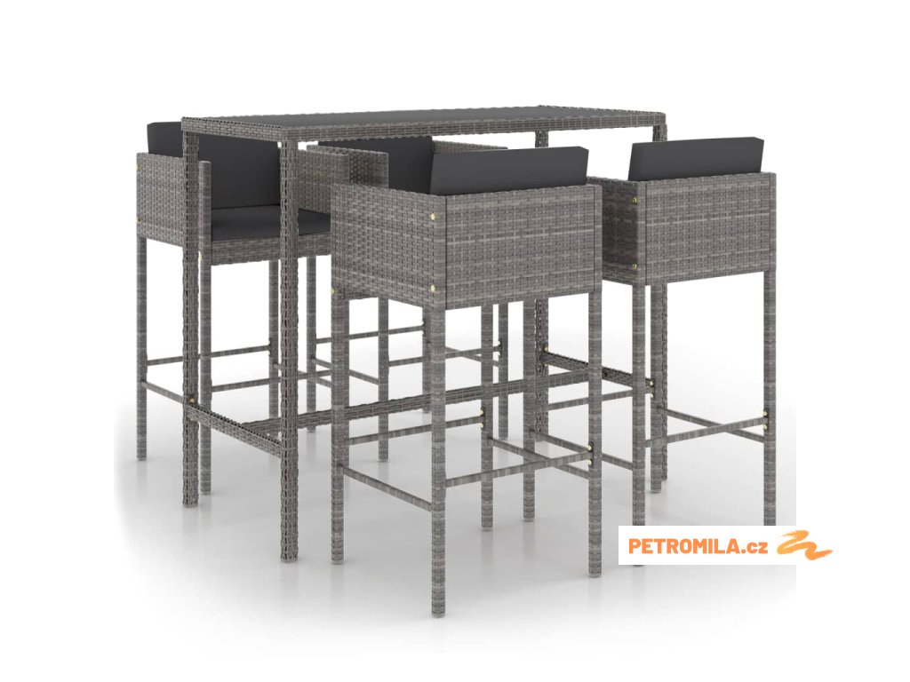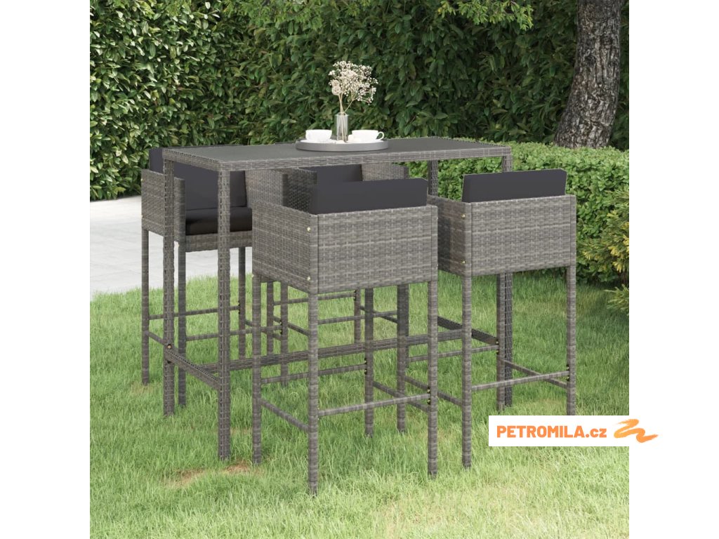 5dílný zahradní barový set s poduškami polyratan šedý