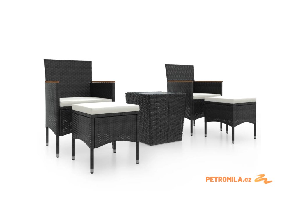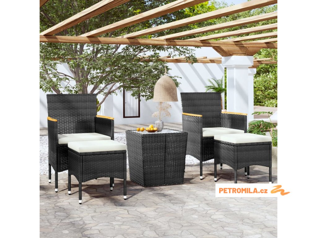5dílný zahradní bistro set polyratan a tvrzené sklo černý