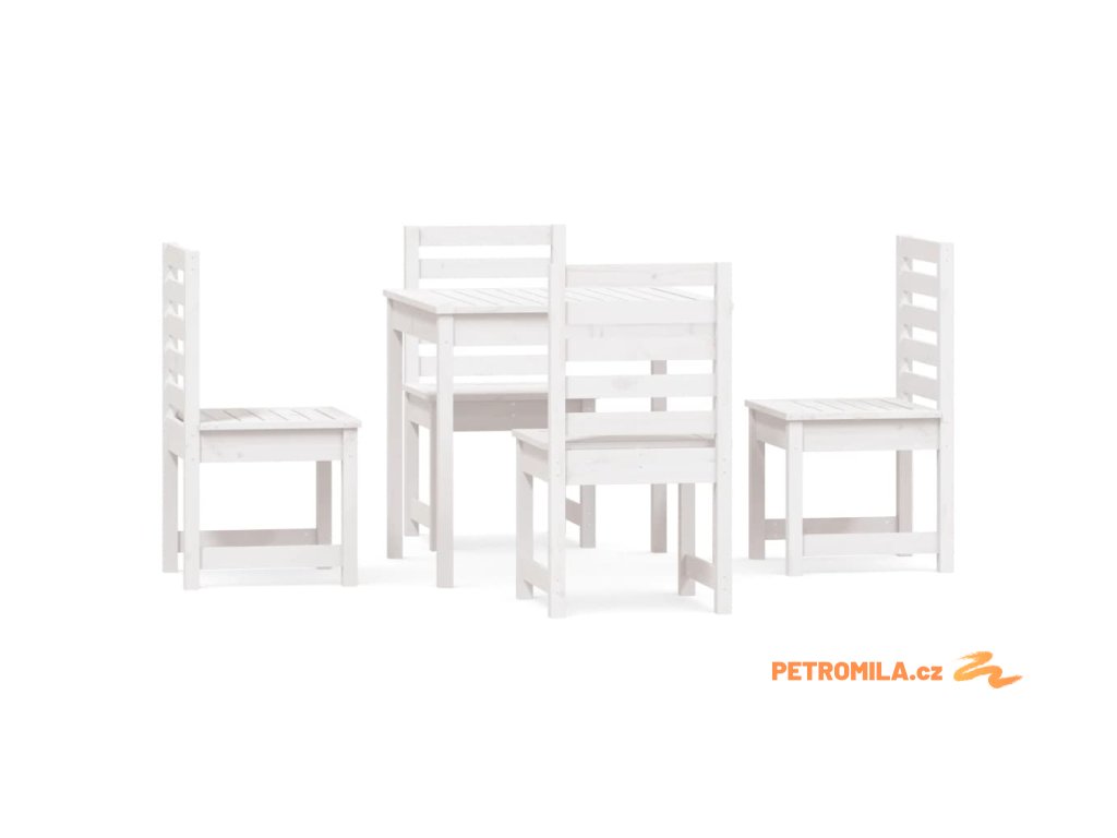 5dílný zahradní jídelní set bílý masivní borové dřevo