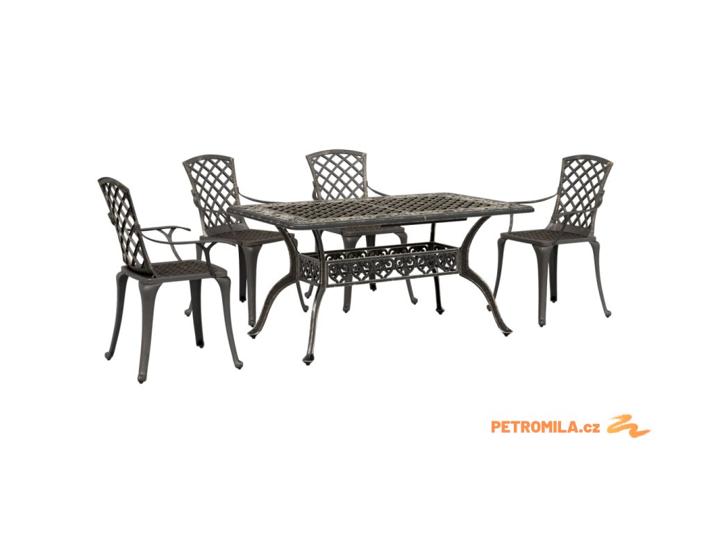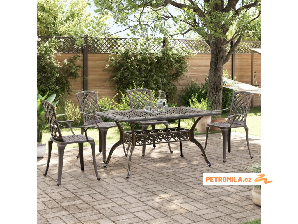 5dílný zahradní jídelní set bronzový litý hliník