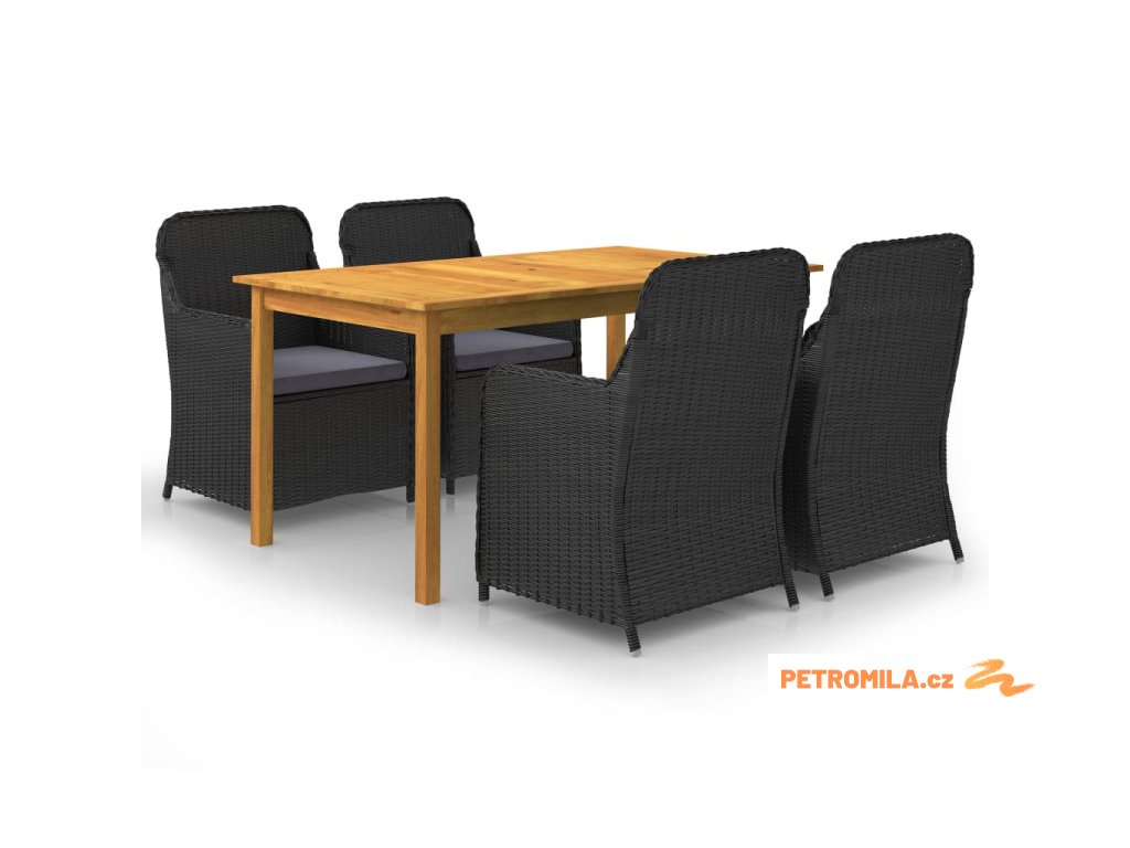 Jídelní stůl je zhotovený z masivního akáciového dřeva s olejovaným povrchem, takže je stabilní, odolný a nenáročný na údržbu. Jídelní židle mají rám z práškově lakované oceli, opletený PE ratanem, který výborně vzdoruje klimatickým vlivům. Dlouho vám proto vydrží a snadno je očistíte. Ergonomický tvar spolu s hustě polstrovanými poduškami vám při sezení zaručí maximální pohodlí. Polyesterové potahy podušek nevyžadují téměř žádnou údržbu a dají se jednoduše stáhnout a oprat.