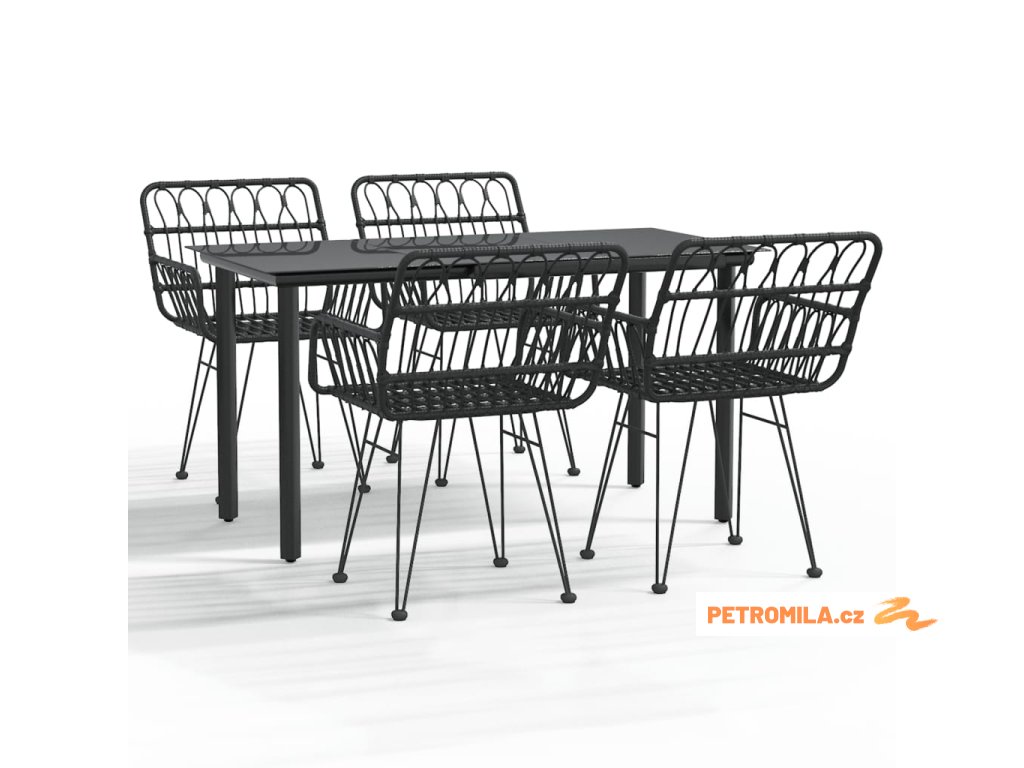 5dílný zahradní jídelní set černý polyratan