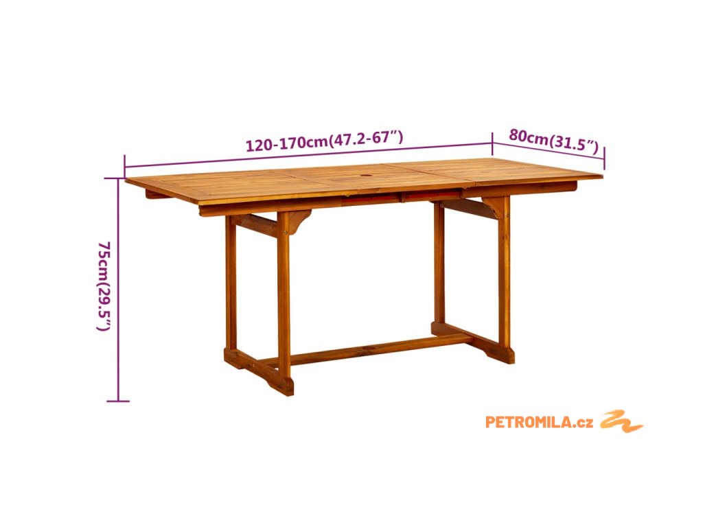 - Rozměry stolu: (120–170) x 80 x 75 cm (D x Š x V)