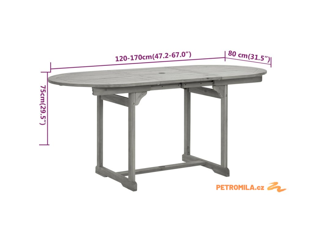 - Rozměry stolu: (120–170) x 80 x 75 cm (D x Š x V)