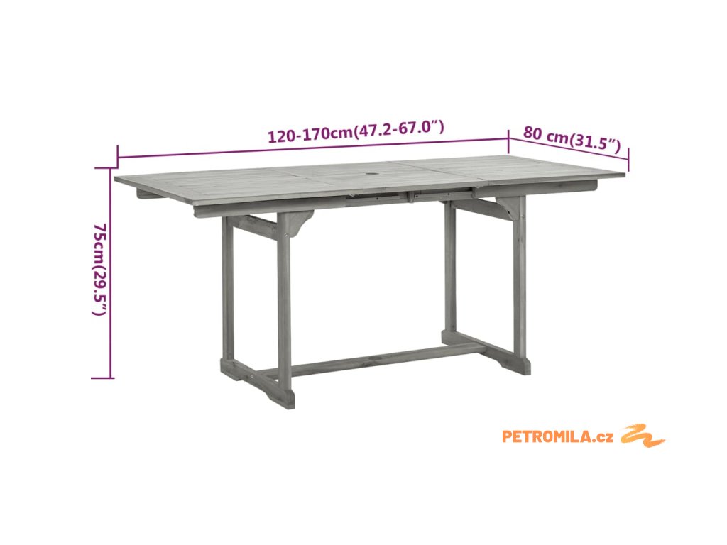 - Rozměry stolu: (120–170) x 80 x 75 cm (D x Š x V)