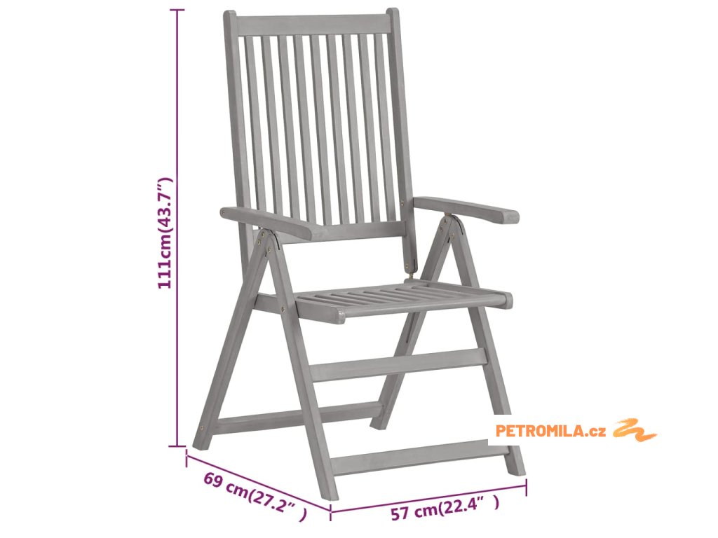 - Nastavitelná a skládací židle: Zahradní židli lze nastavit do 5 poloh, a tak vám při sezení zajistí optimální pohodlí. Pokud jídelní židle právě nepoužíváte, můžete je složit, aby vám zbytečně nepřekážely.