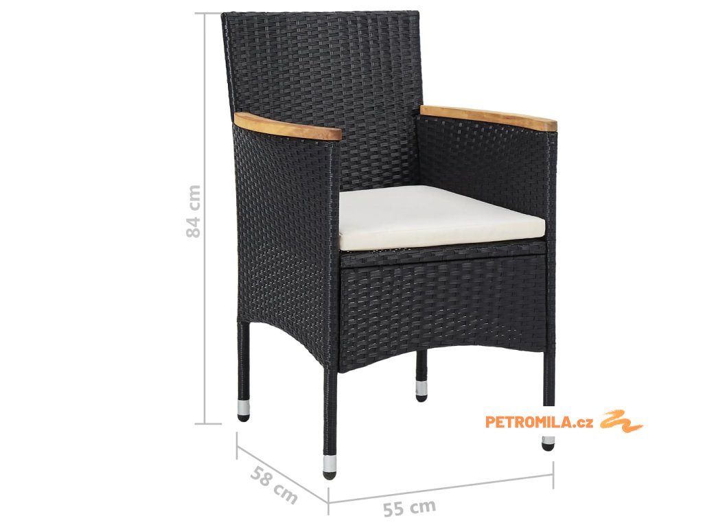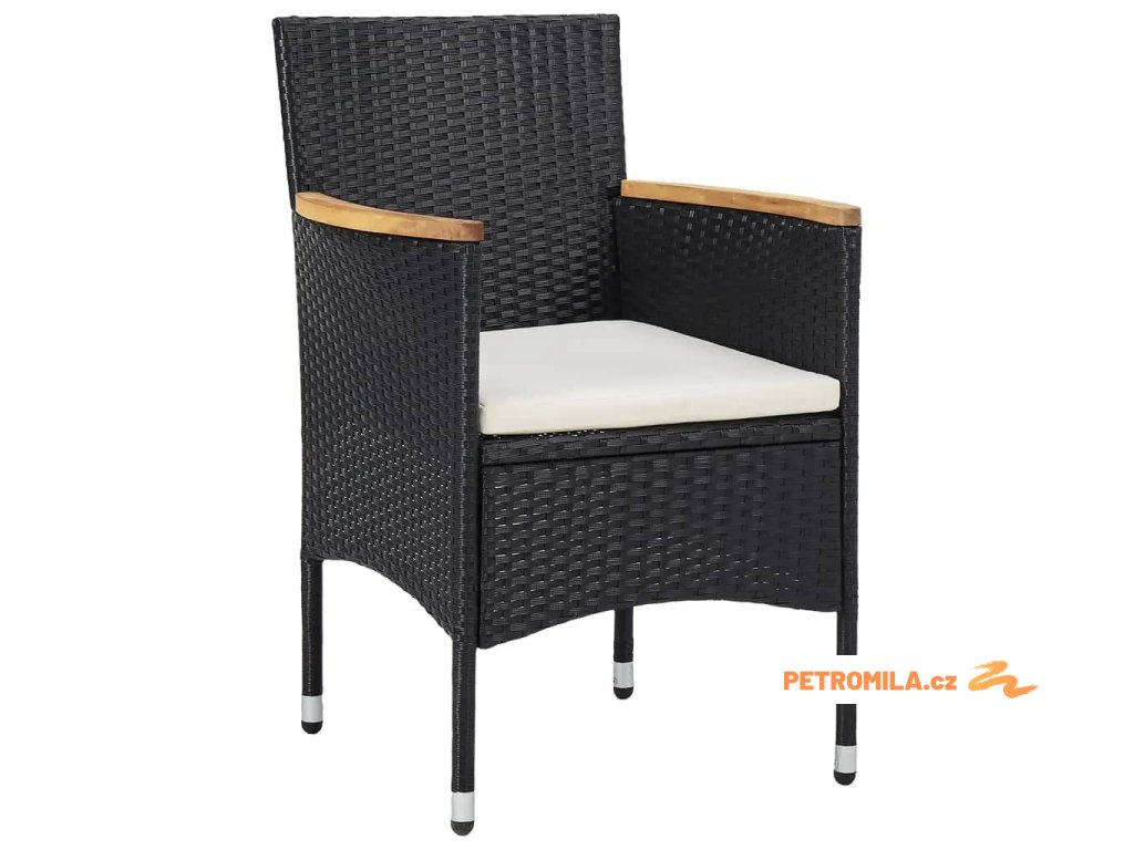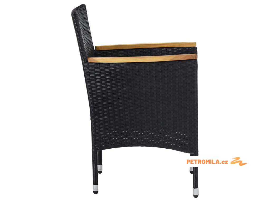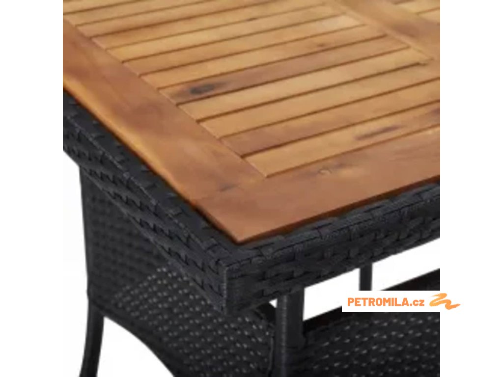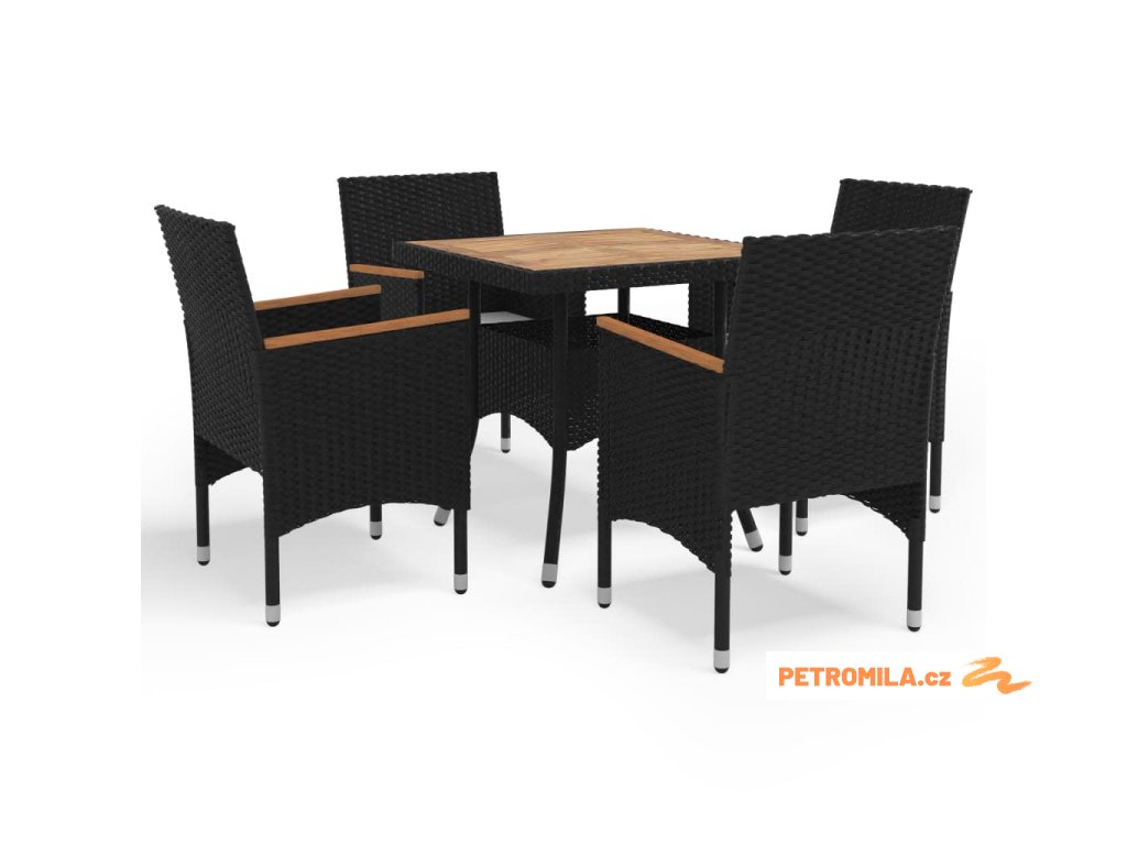 5dílný zahradní jídelní set polyratan a masivní dřevo černý