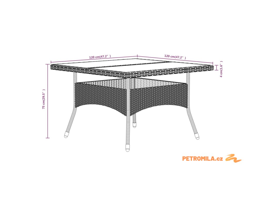 - Rozměry stolu: 120 x 120 x 75 cm (Š x H x V)