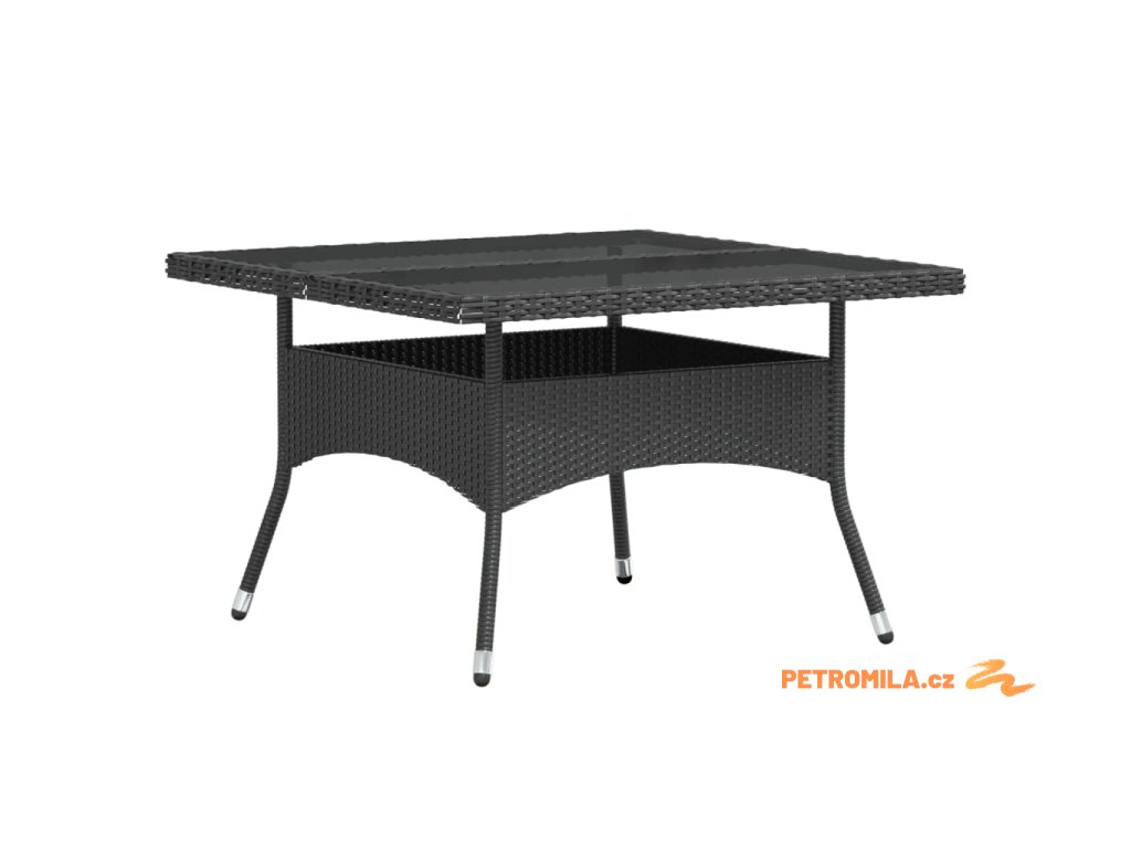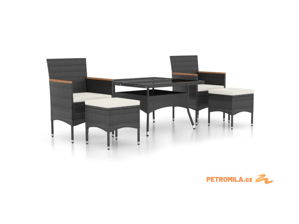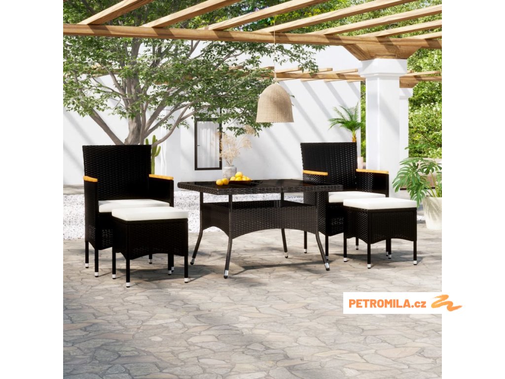 5dílný zahradní jídelní set polyratan a tvrzené sklo černý