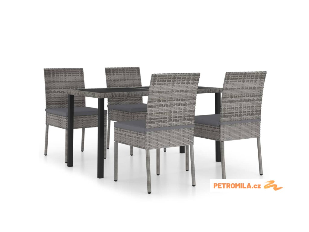 5dílný zahradní jídelní set polyratan šedý