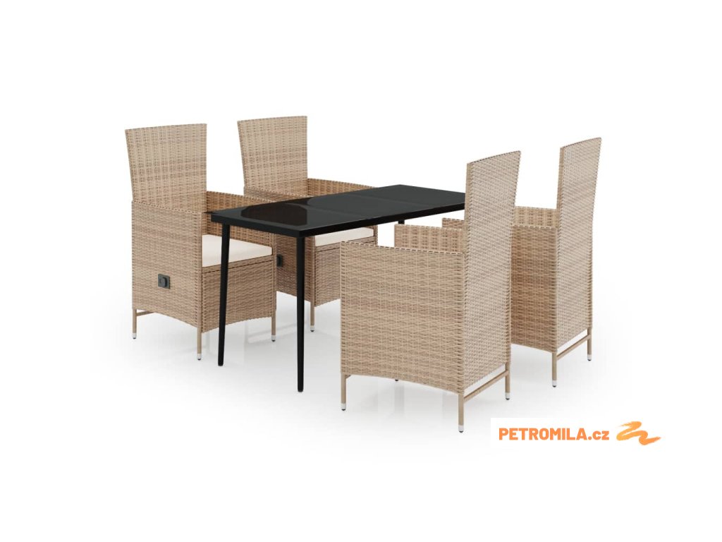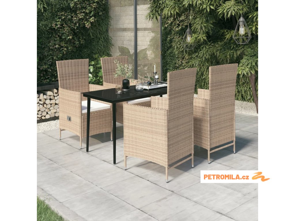 5dílný zahradní jídelní set s poduškami béžový